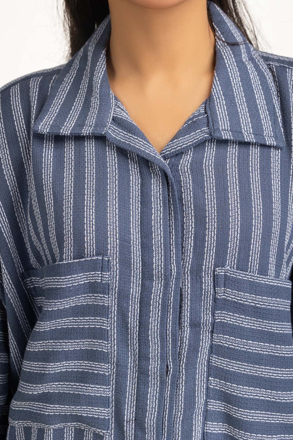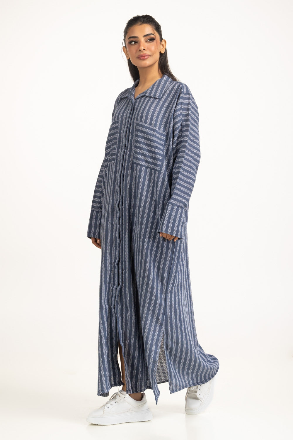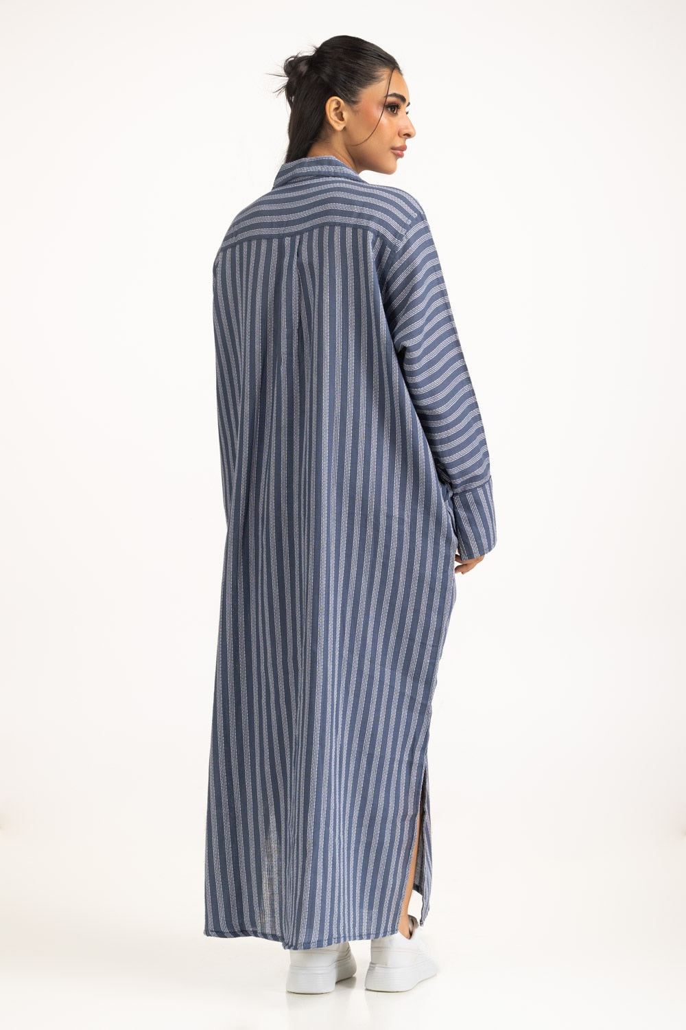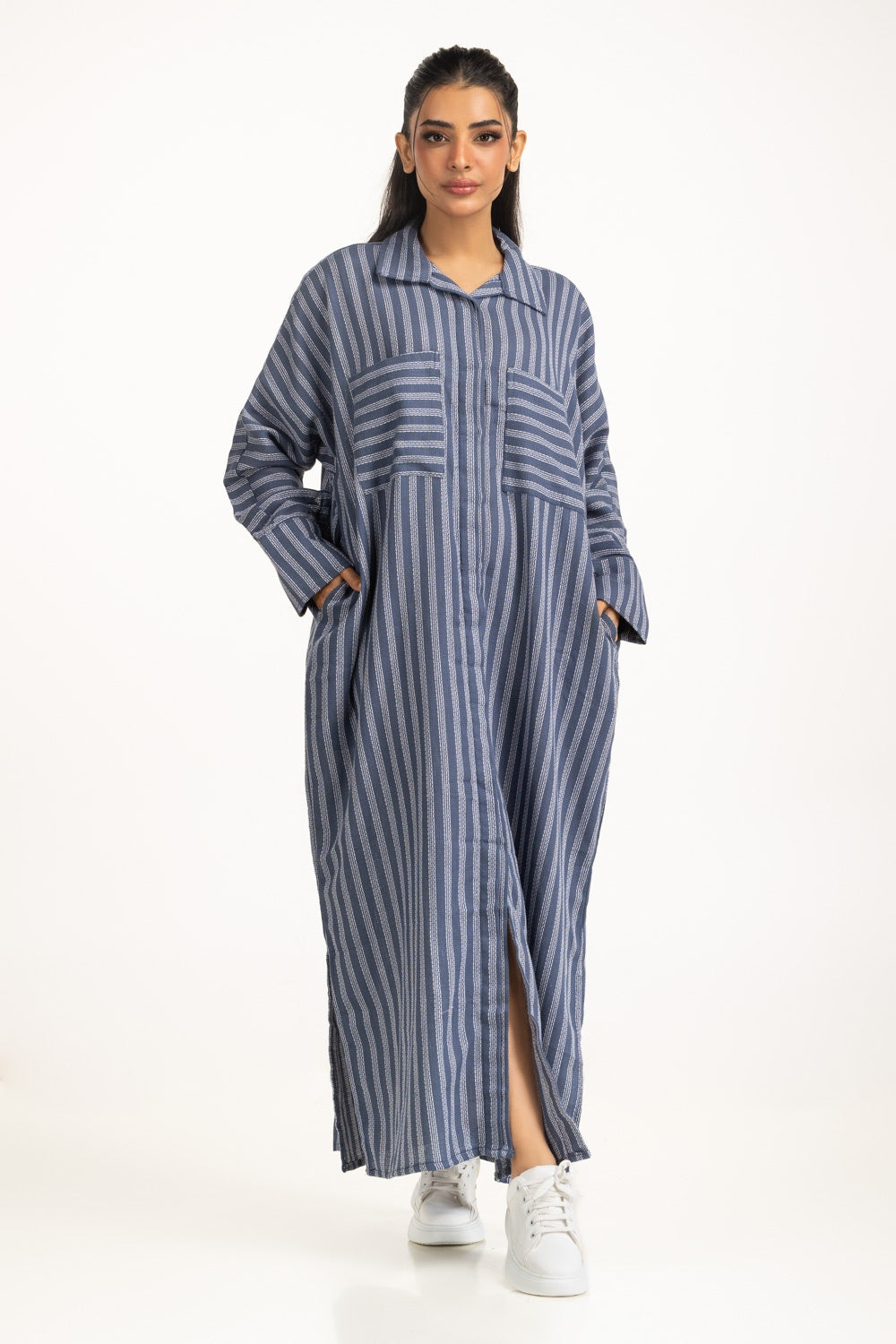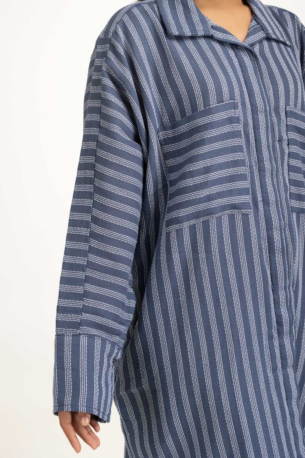 Textured stripes give this button-down dress a modern edge, while its relaxed fit ensures all-day comfort. Front and side pockets combine style with practicality, perfect for summer errands or strolls. Made in 100% breathable cotton, it‚Ñ¥s light, airy, and effortlessly chic.