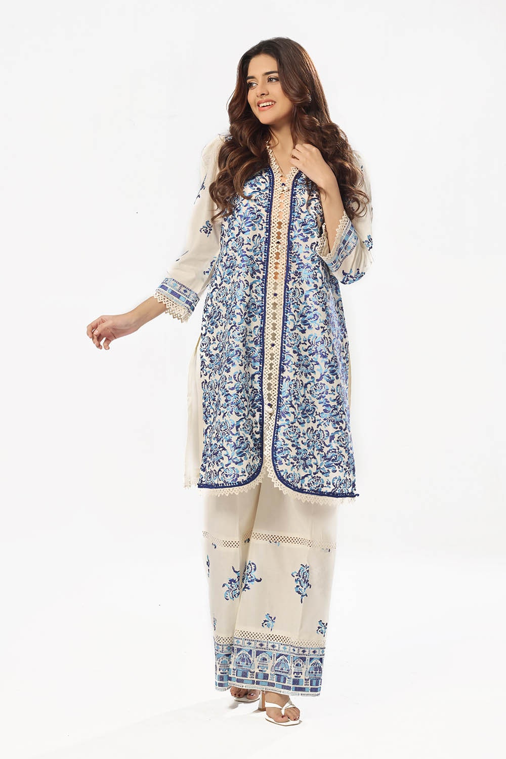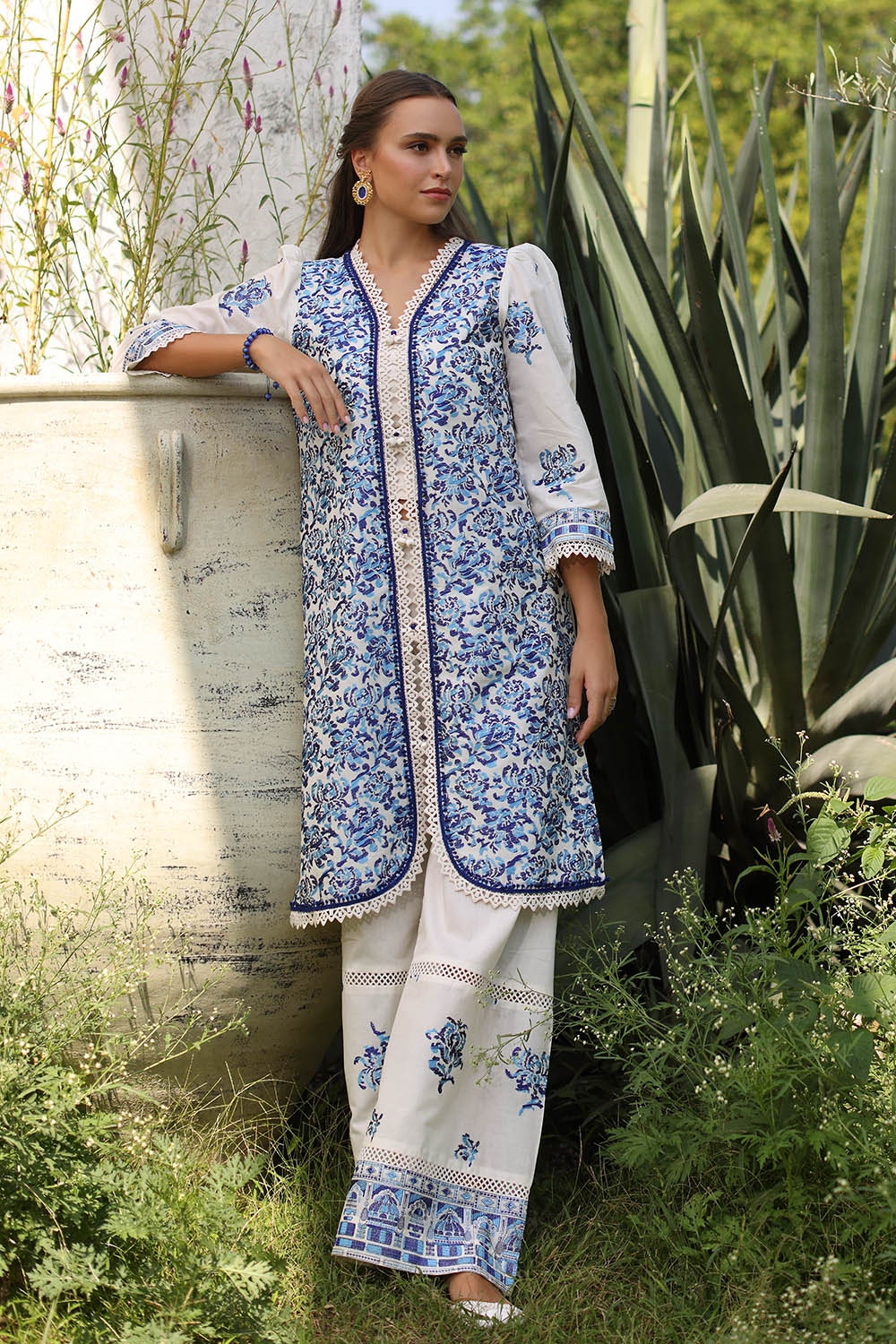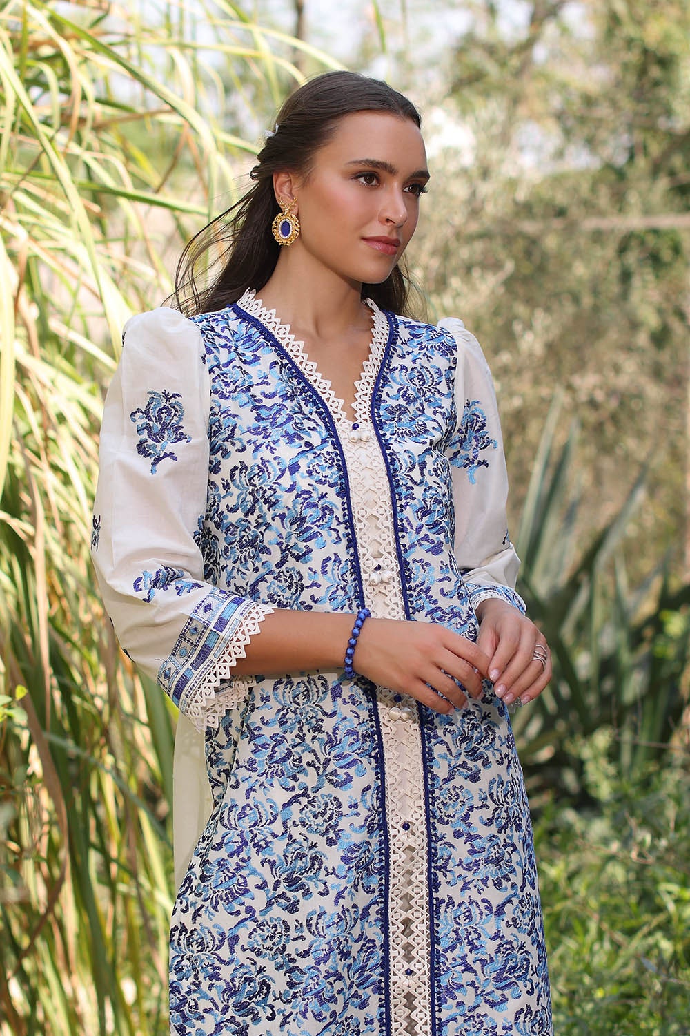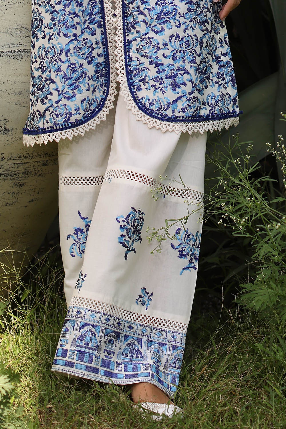 • Embroidered Lawn Shirt Front & Sleeves with Embroidered Borders for Front & Back Dyed Lawn Back  - 2.78 Meters