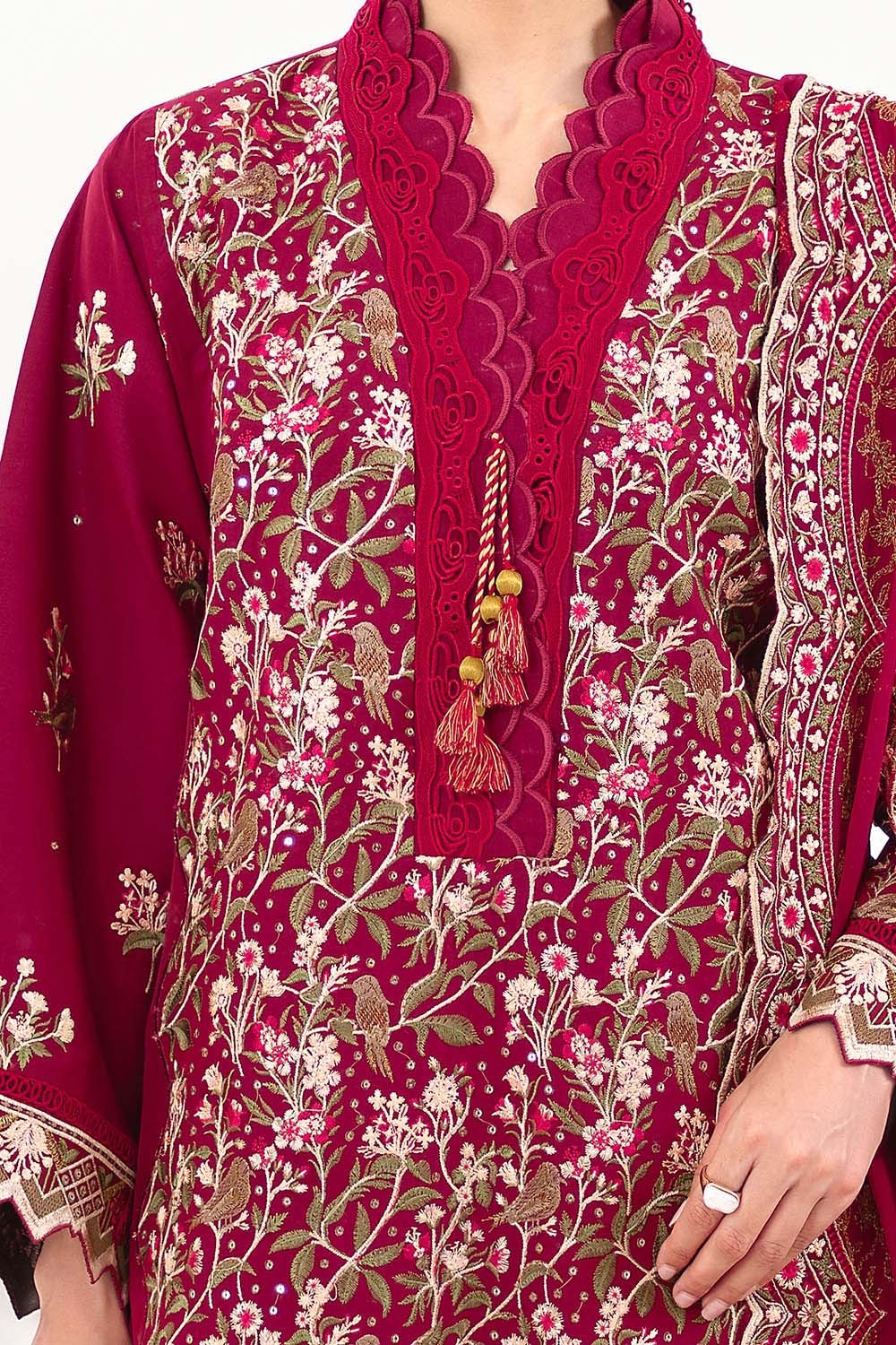3 Piece Unstitched Embroidered Lawn Suit with Embroidered Chiffon Dupatta FE-52129