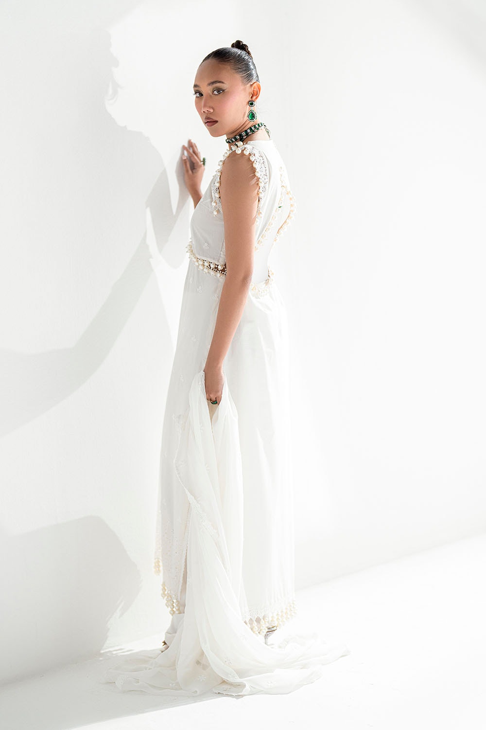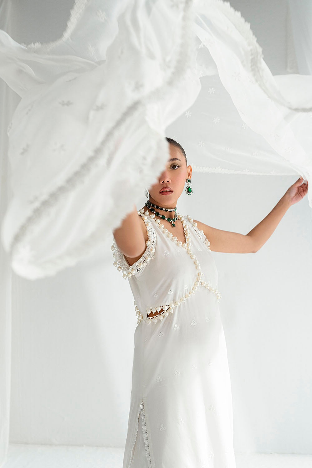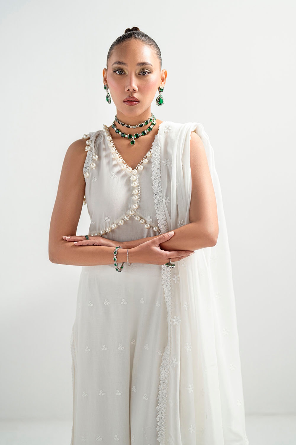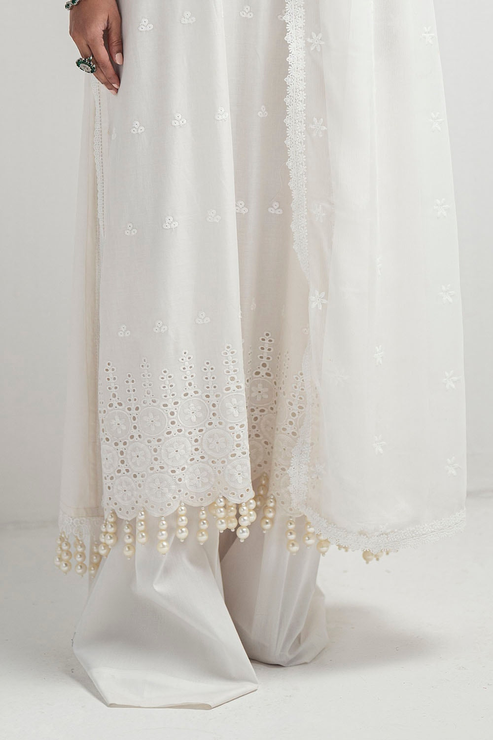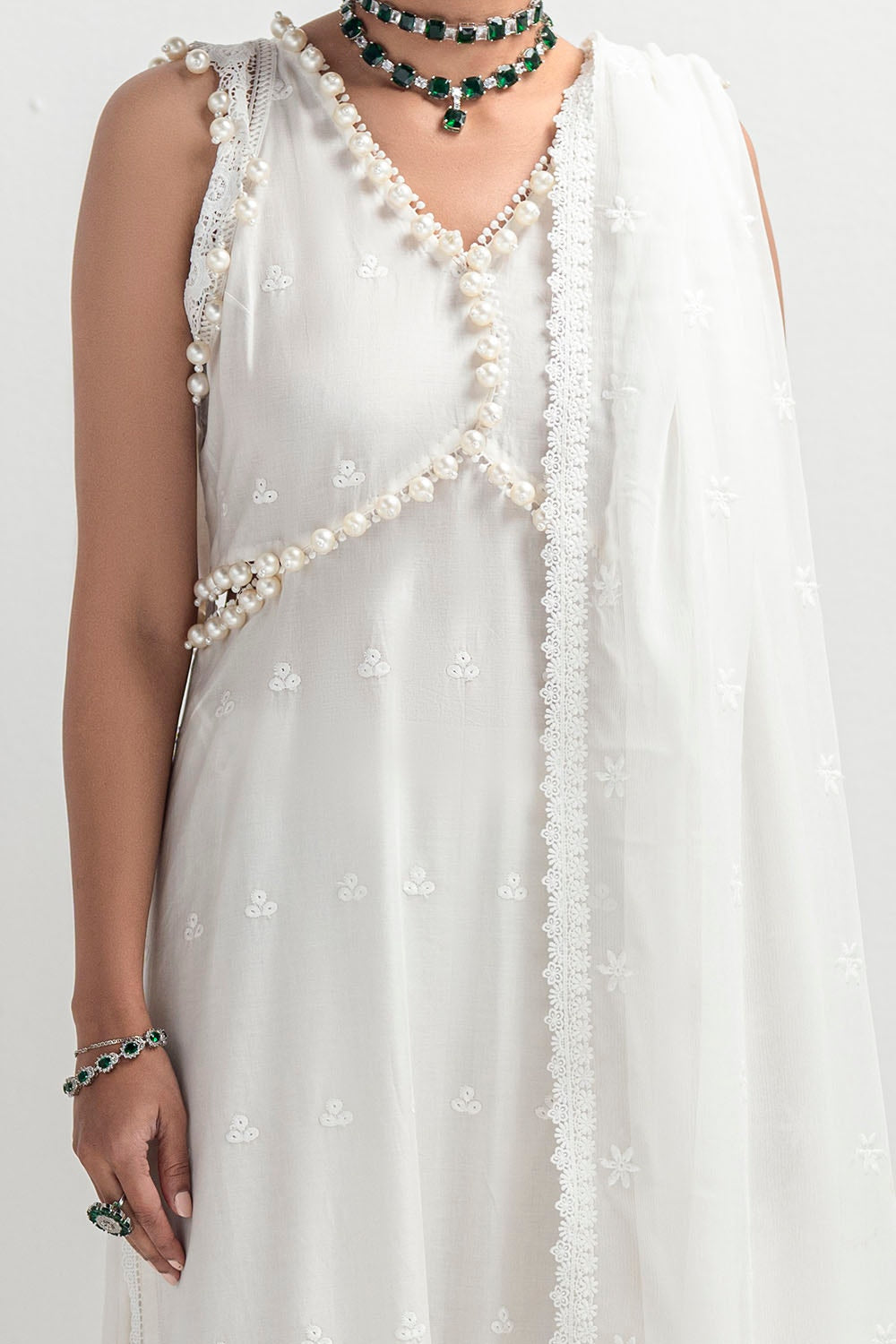 • Schiffli Embroidered Chiffon Dupatta with Schiffli Lace for Dupatta Pallu - 2.5 Meters