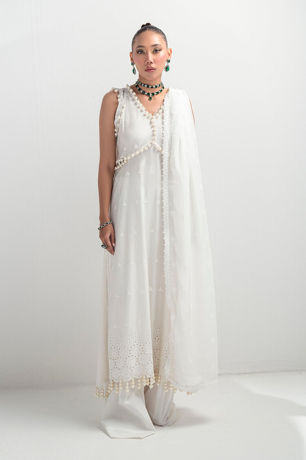 • Schiffli Embroidered Lawn Shirt Front & Sleeves. Schiffli Lace for Front & Back. Dyed Lawn Back - 2.28 Meters