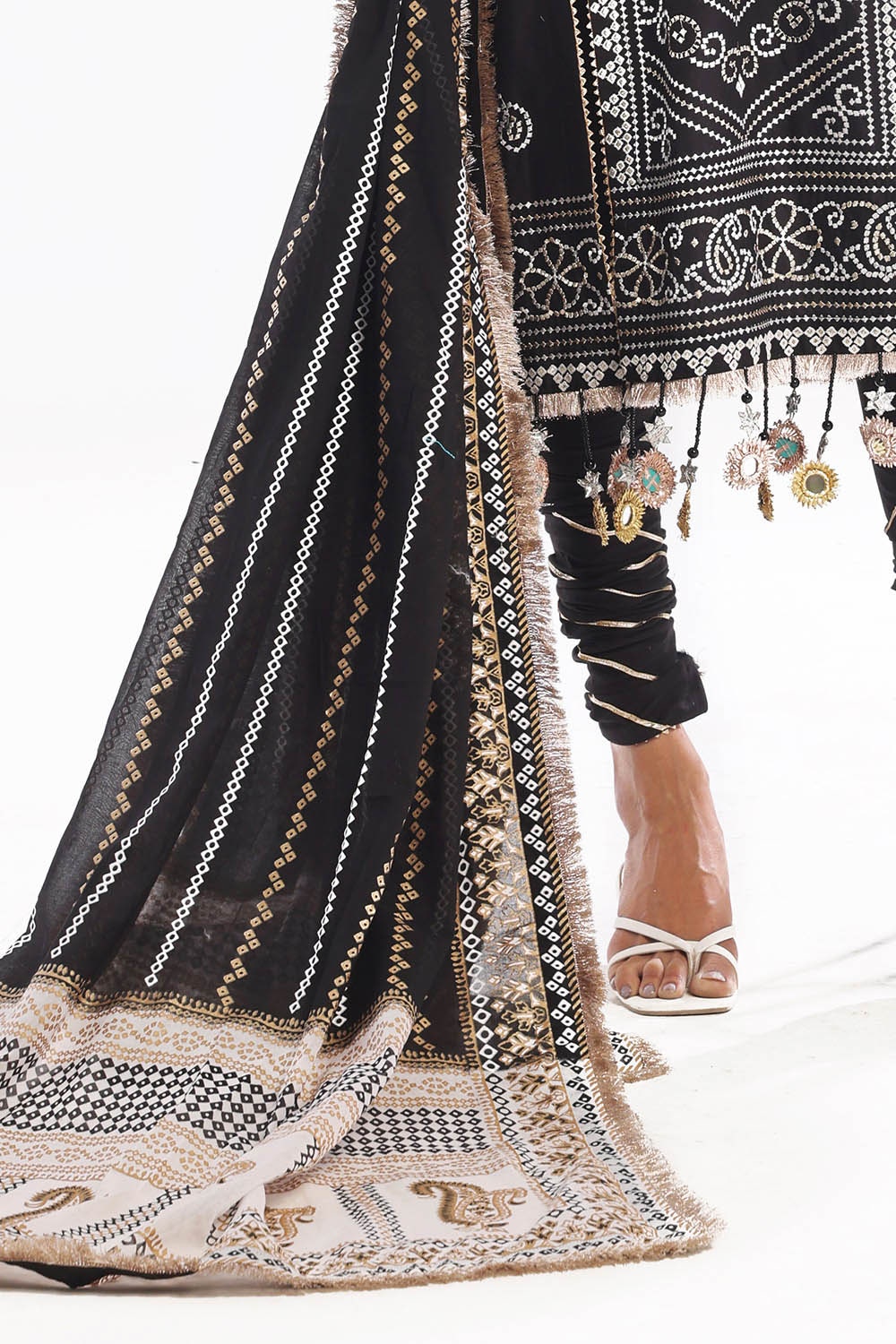 3 Piece Unstitched Zari Embroidered Lawn Suit with Gold Lacquer Printed Lawn Dupatta CL-52407