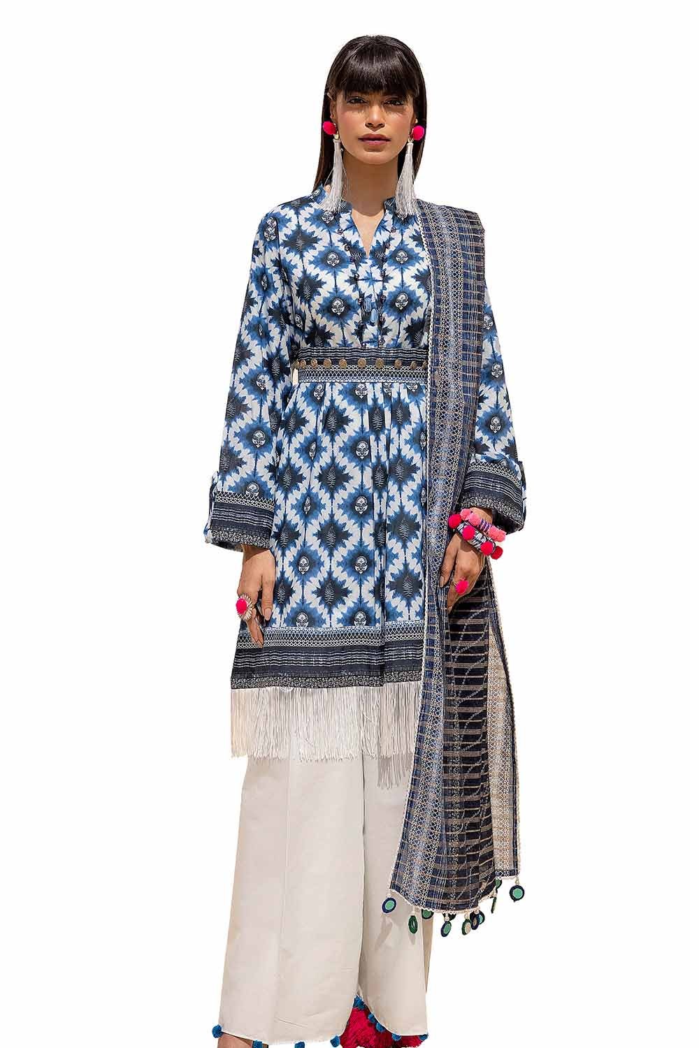 3 Piece Unstitched Printed Lawn Suit with Zari Stripe Dupatta ST-42004