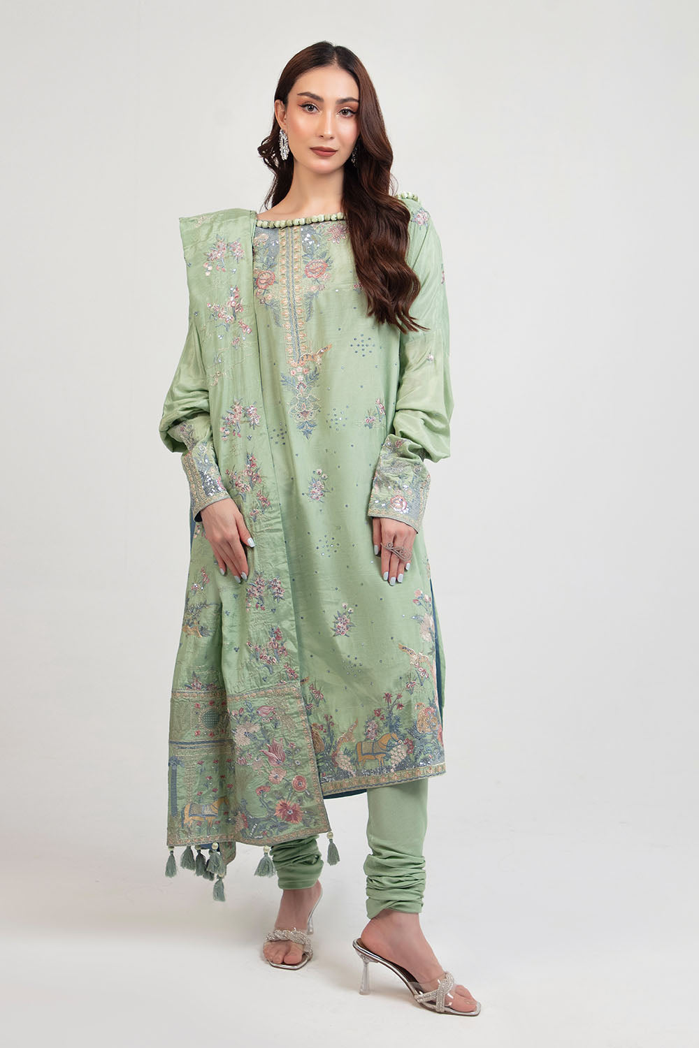 3 Piece Embroidered Raw Silk Suit with Dupatta SP-52061