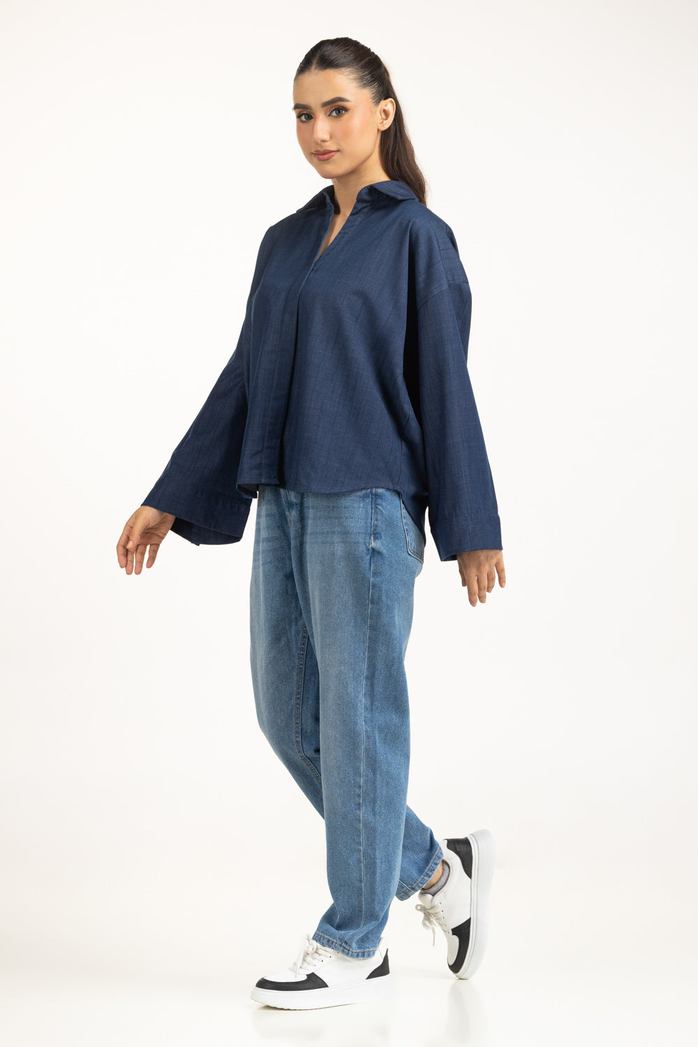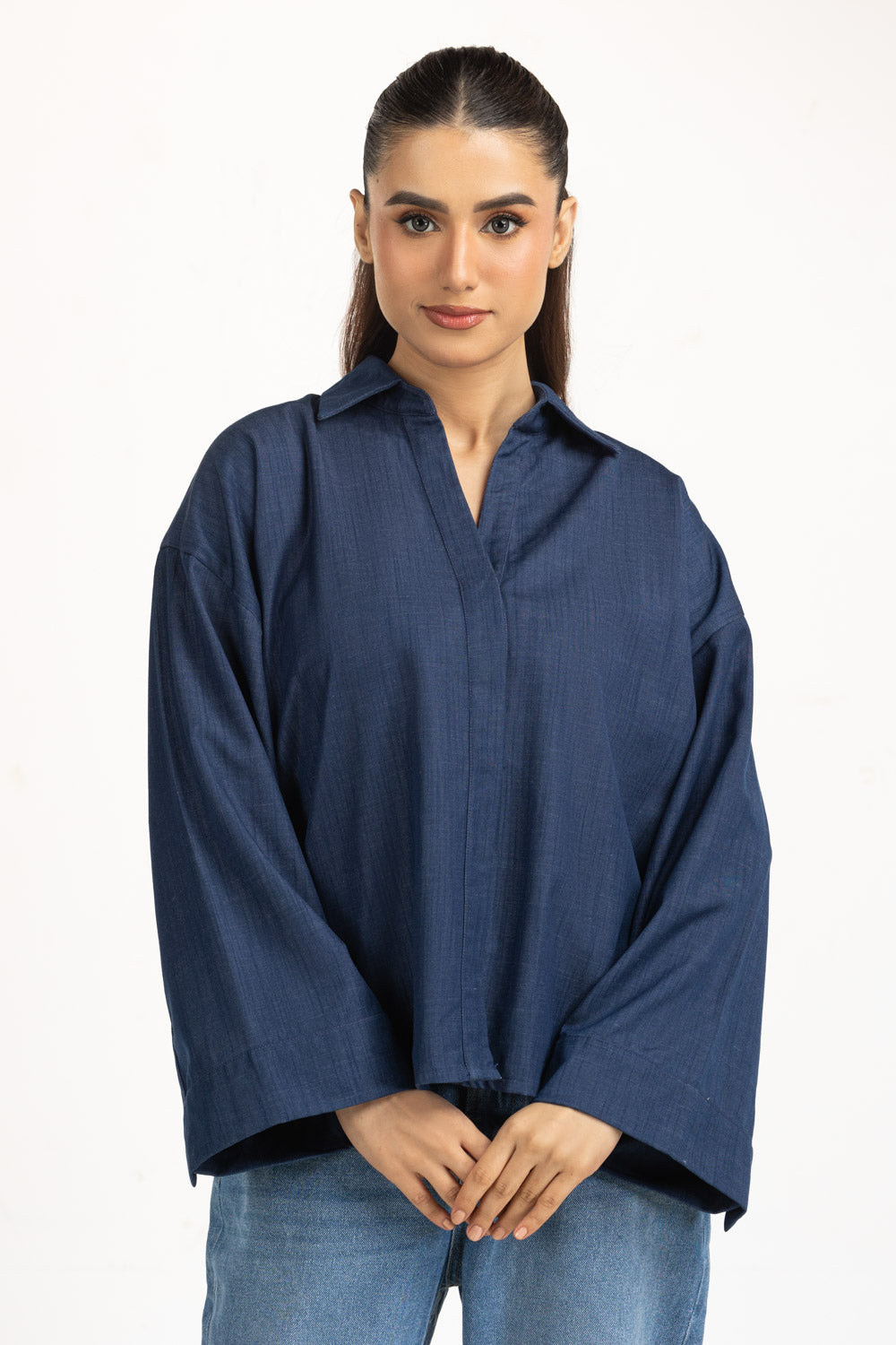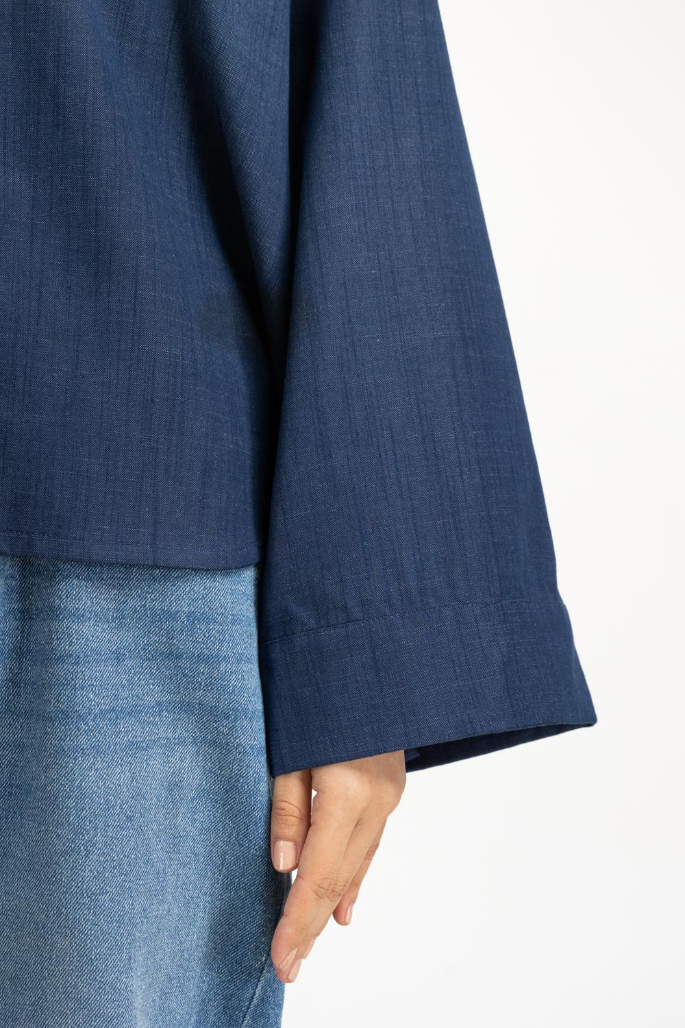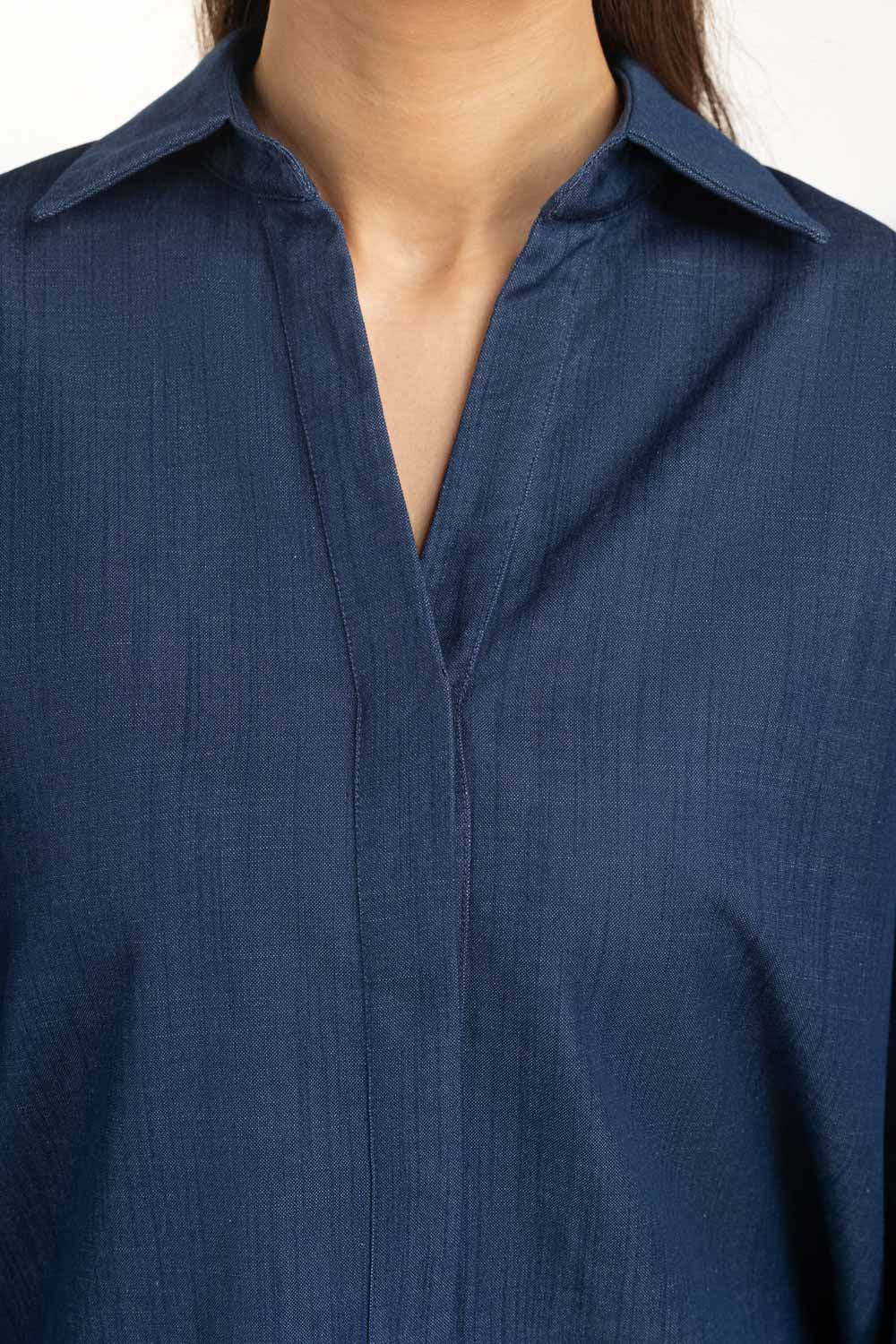 This fashion-forward shirt in blue brings together a sharp collar with an open V-neckline, and graceful kimono sleeves. The regular fit creates a polished yet easy profile. Perfect for transitioning from desk to dinner with effortless refinement.
