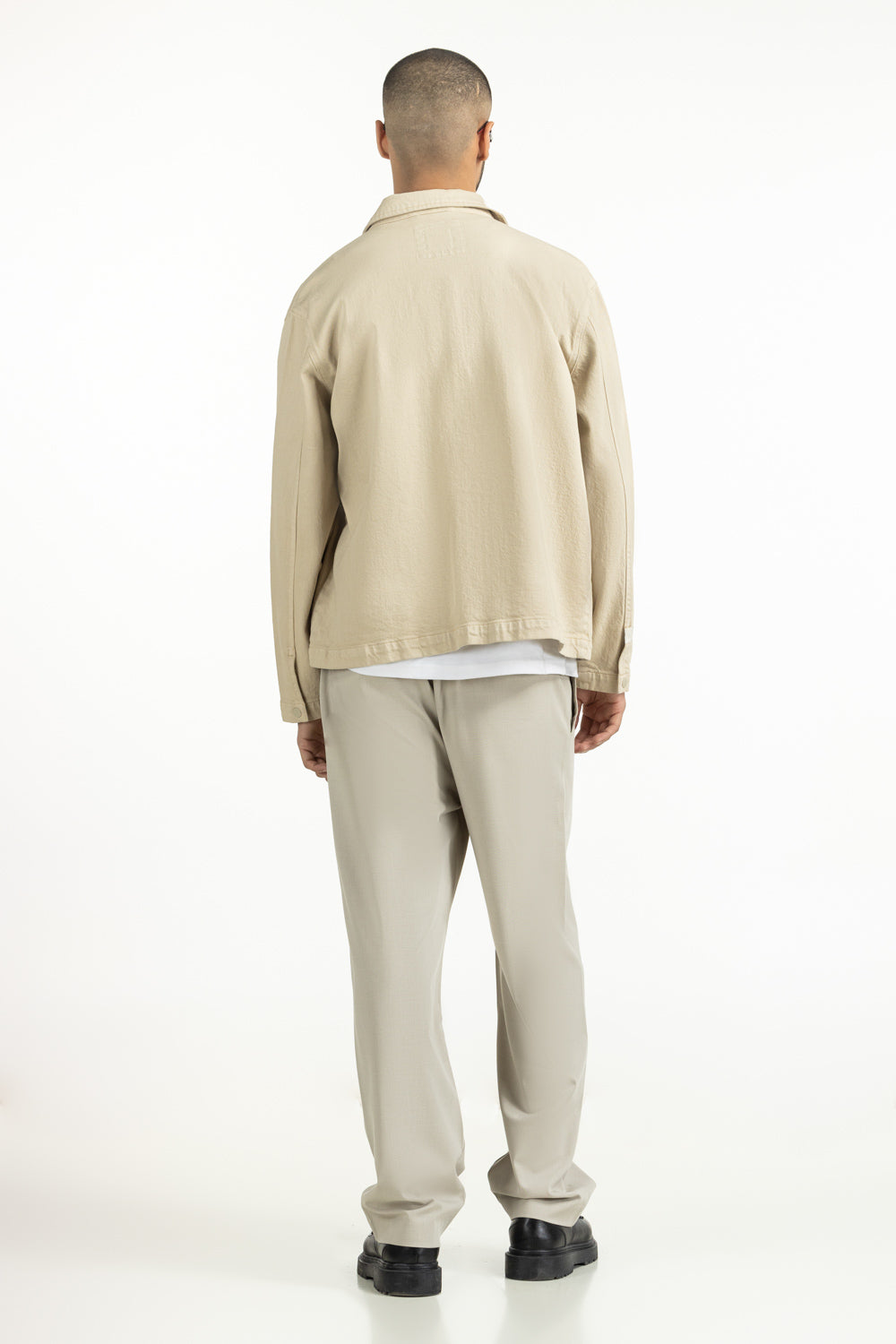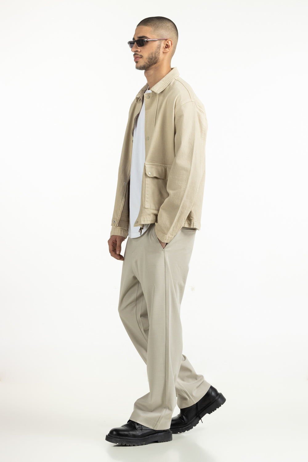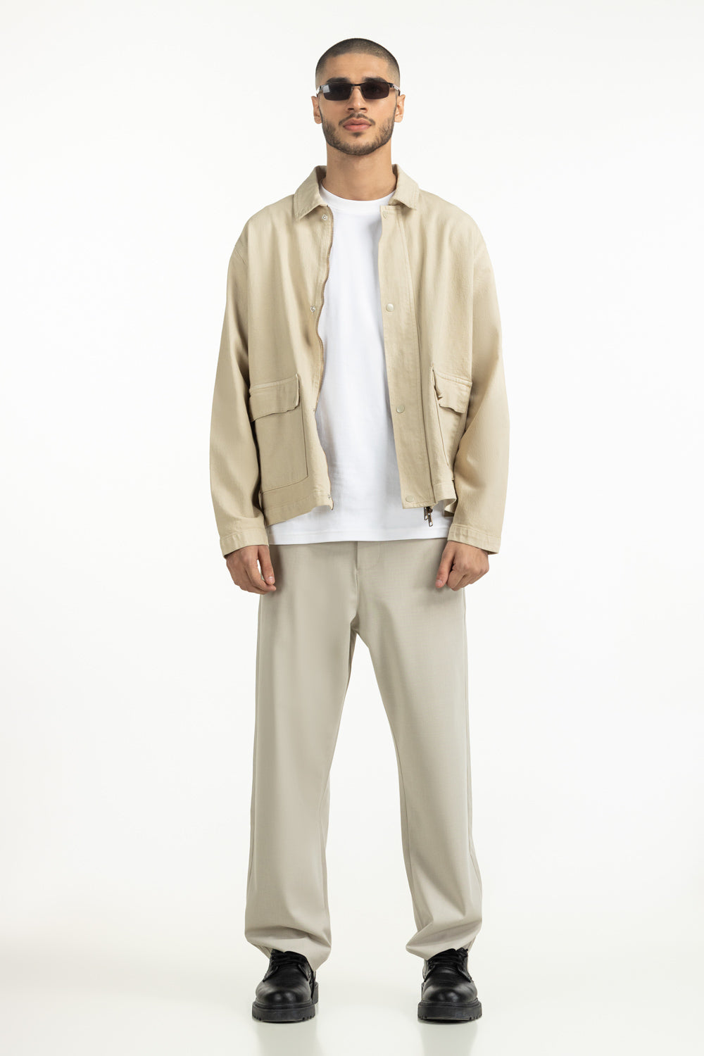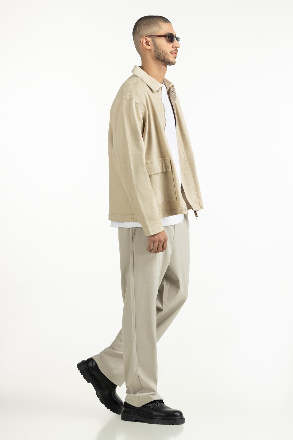 A contemporary classic in beige, this jacket balances structure and ease with a regular fit. The zipper front and button placket create a layered design detail. While the pockets at the front add everyday functionality with a premium finish.