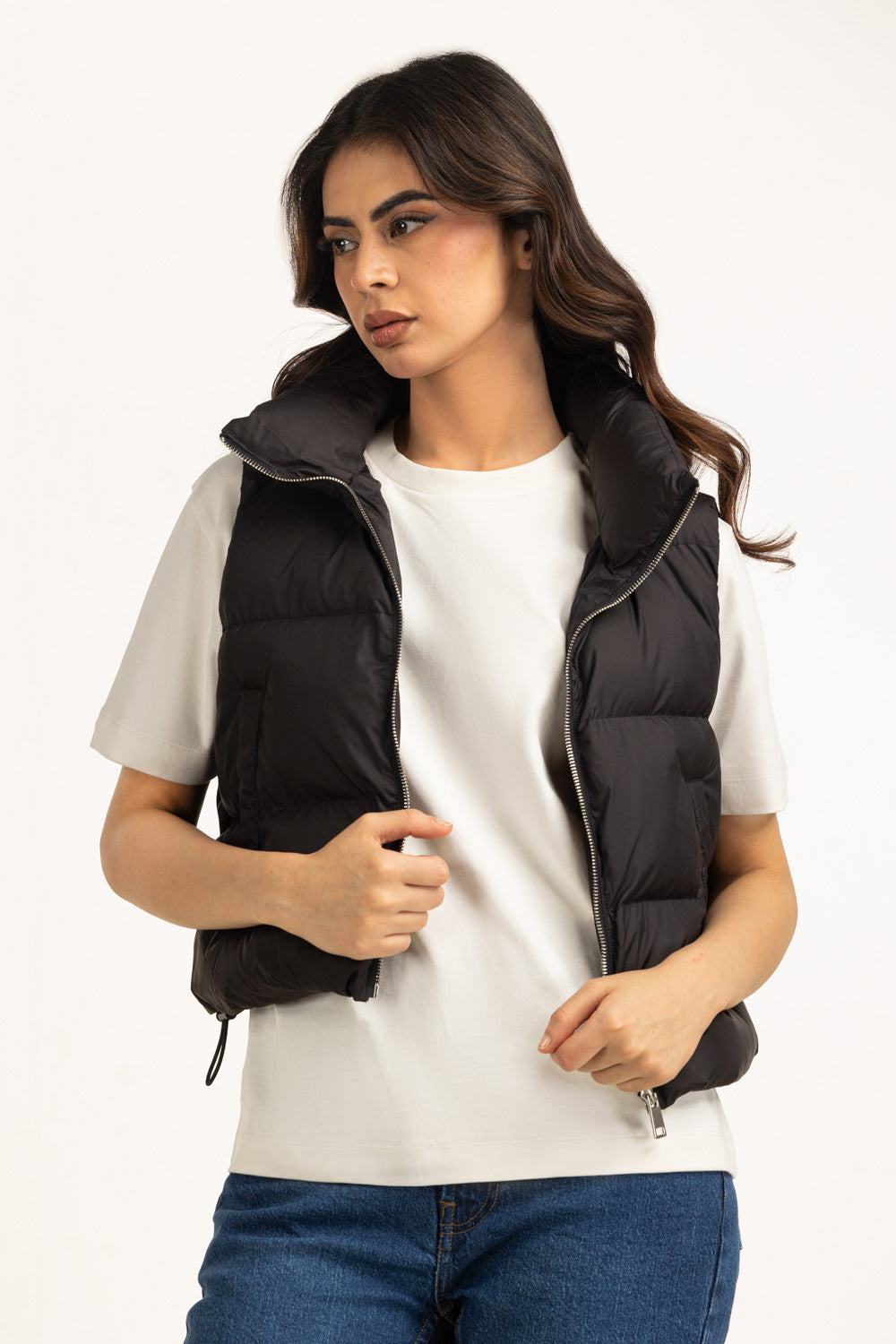 The sleek puffer jacket in a sleeveless cut, crafted in regular fit for effortless layering. The high-neck design keeps warmth locked in, while the zipper front and two pockets combine utility with modern polish. A contemporary essential for everyday modern styling.
