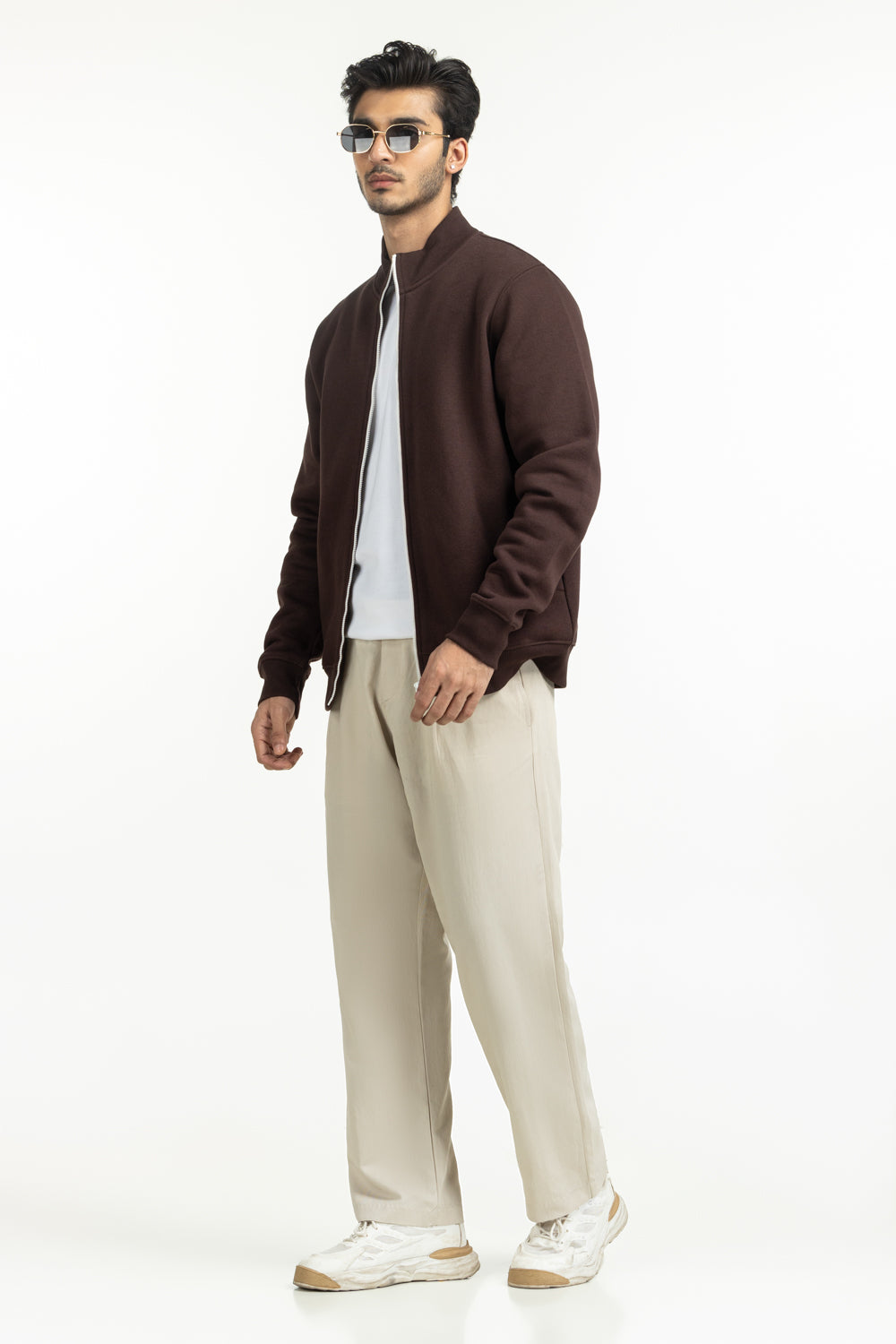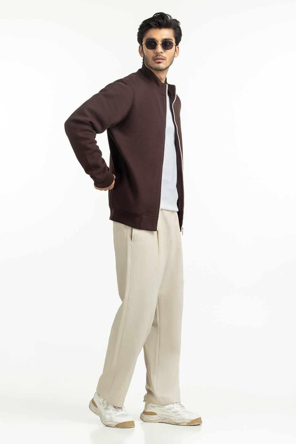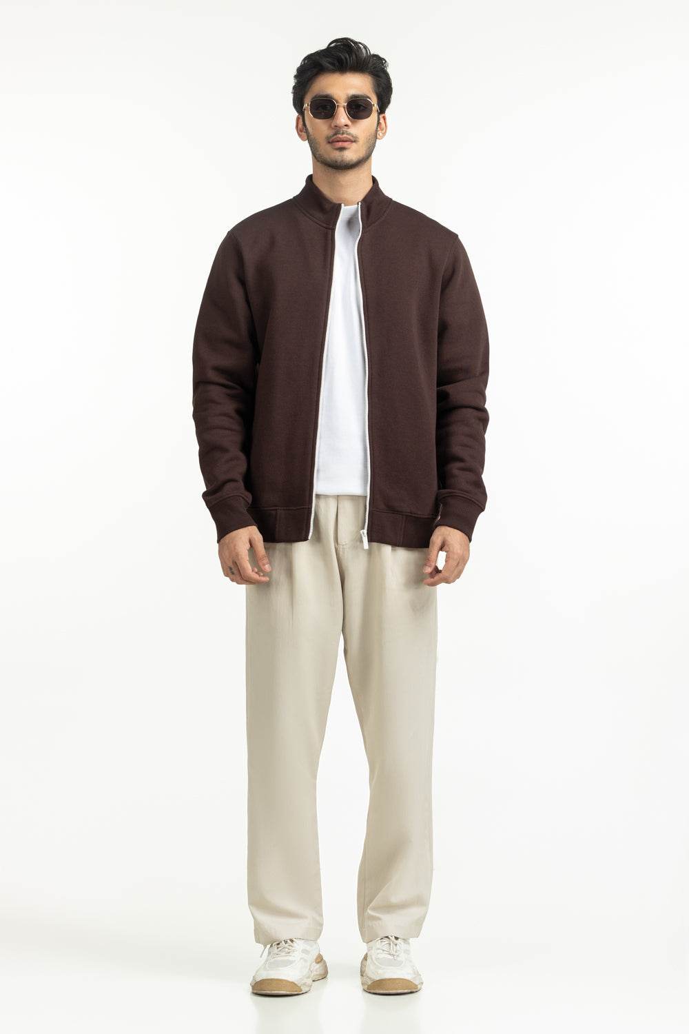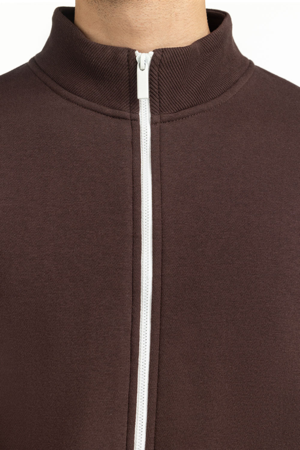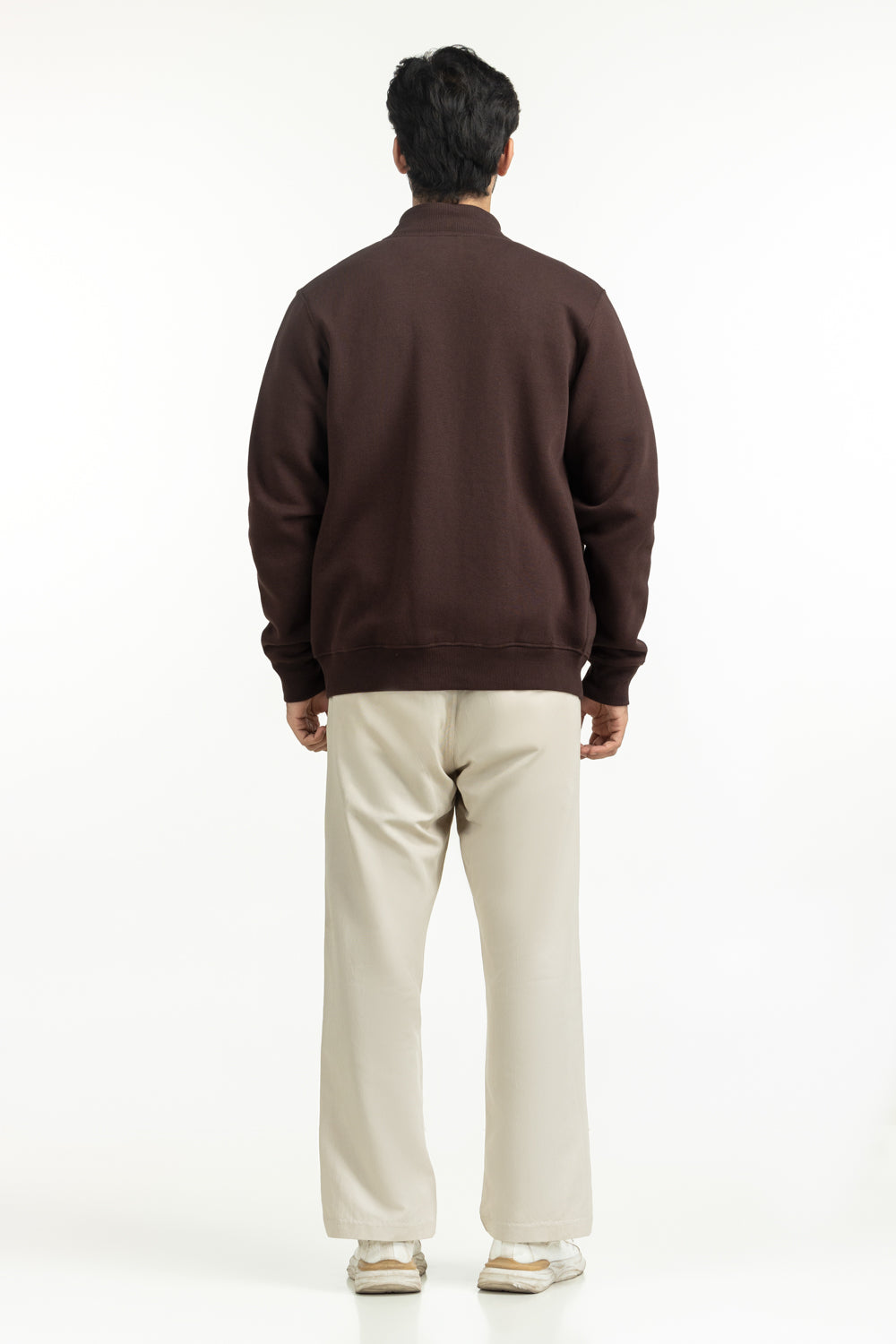 The knitted zipper designed for everyday versatility, styled in a rich coffee brown hue. The band collar ensures warmth, and ensures a polished winter look. While its regular fit provides an ideal balance between ease and sharpness.