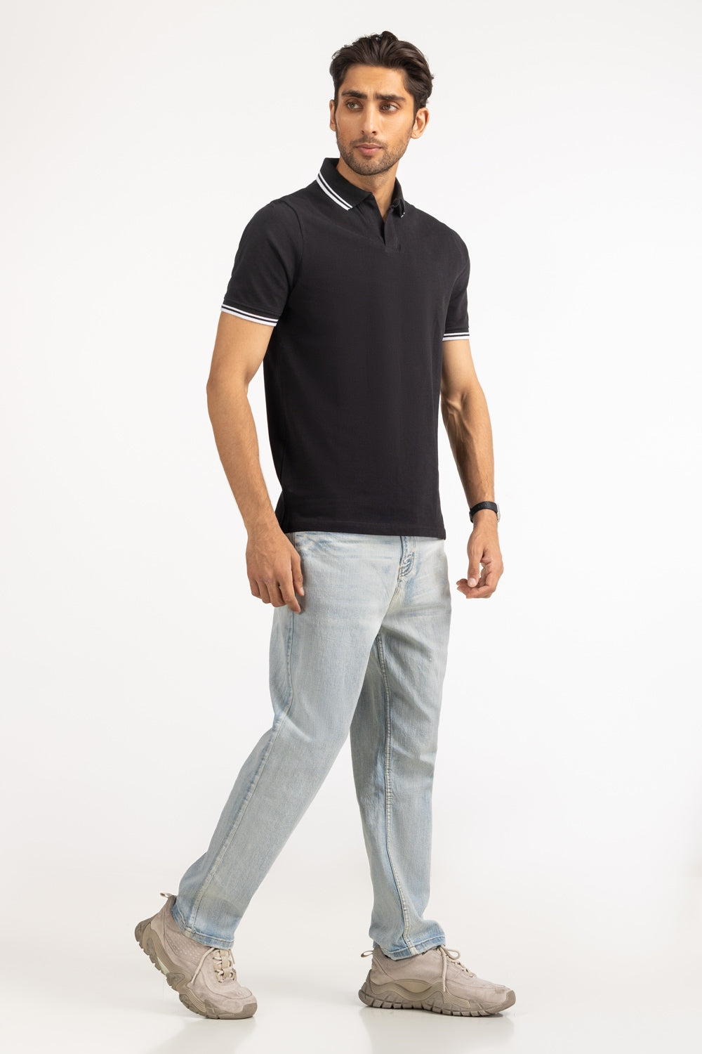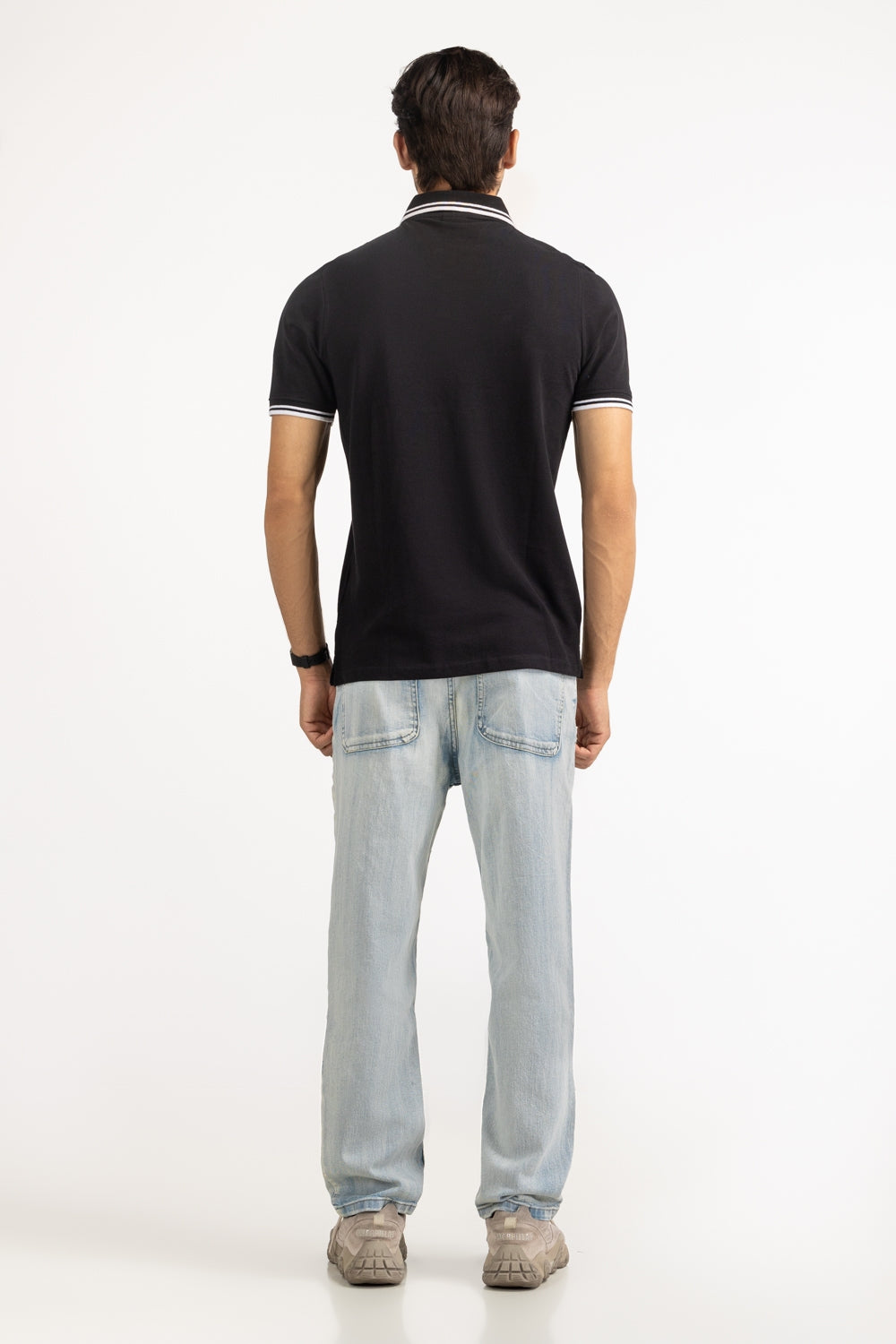 Minimal and elegant, this polo in bold black highlights a collar accent against a clean solid base. The cotton pique fabric delivers both structure and softness. Its regular fit gives effortless movement. Designed to carry you from casual to crisp