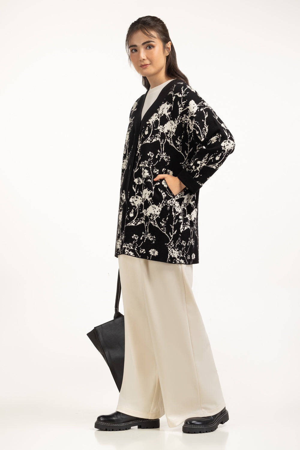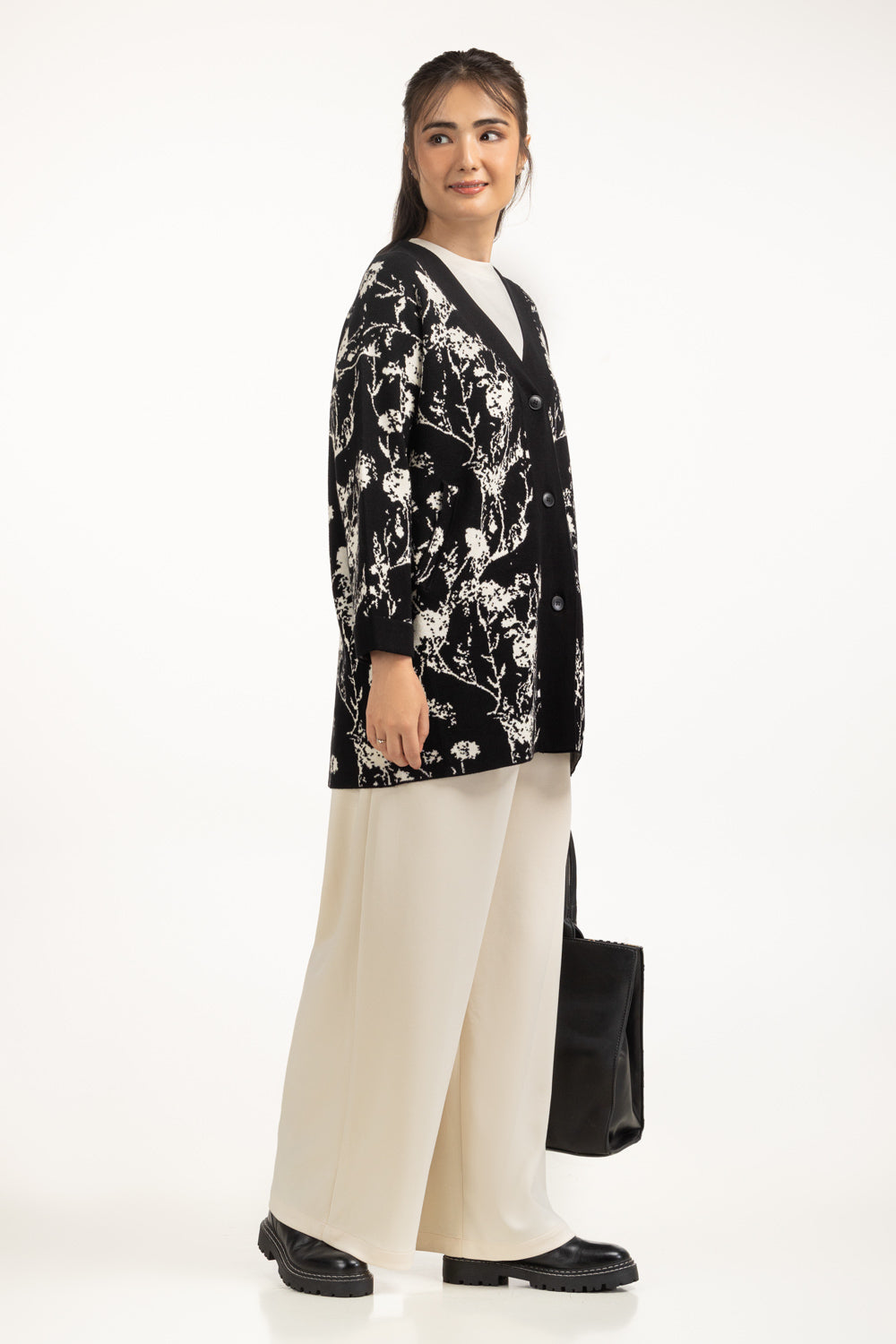 The cardigan designed for women who love relaxed-fit ease with sophistication. Its bold pattern brings a classic edge to your winter wear. The V-neckline frames the silhouette gracefully, while the button-down style allows flexibility in layering.