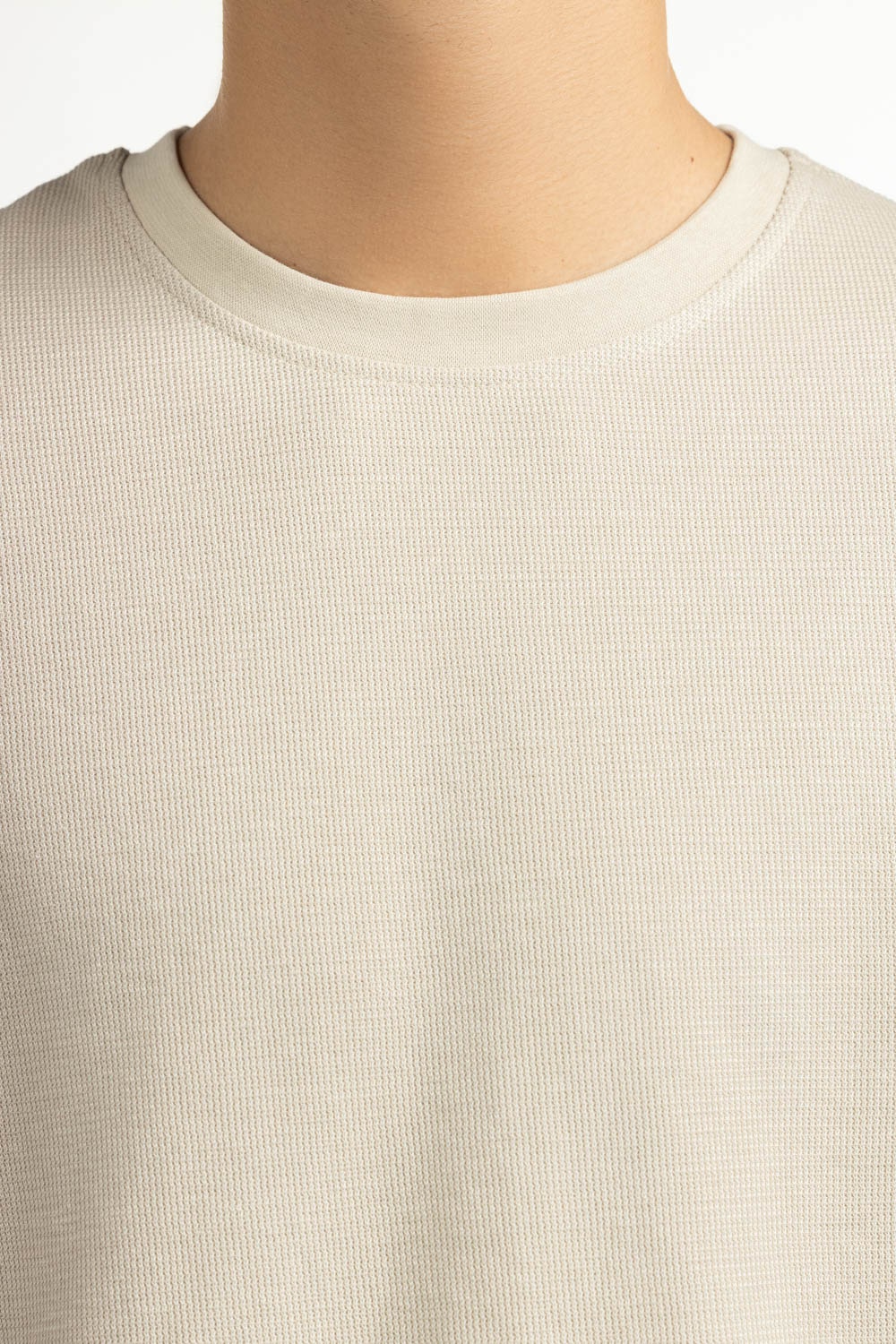 Elevating casualwear, this t-shirt features knitted texture that adds subtle complexity to a classic regular fit silhouette. Lightweight and breathable, it moves effortlessly from day to dusk, offering a polished look wherever you go.