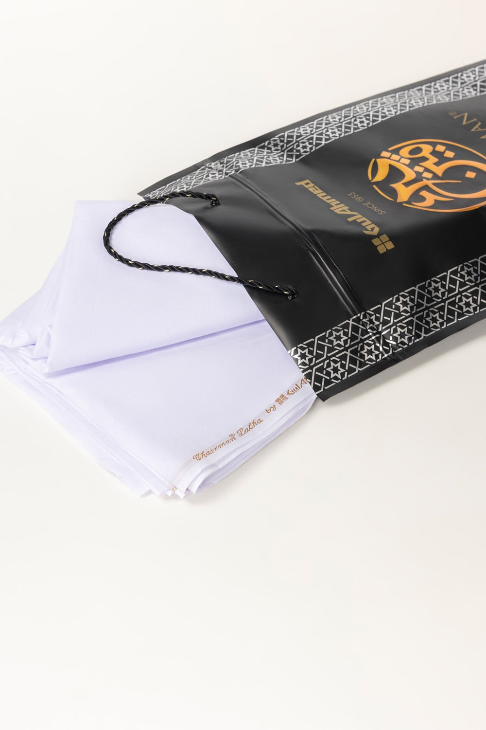 White Chairman Latha Unstitched Fabric Cotton -Pouch Pack