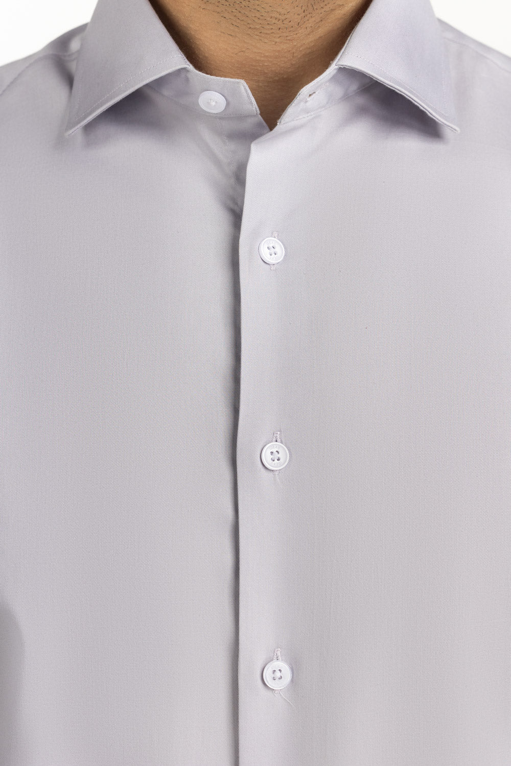 Elevate your formal style with this men’s plain dress shirt, designed for a sharp and contemporary appearance. Tailored in a modern fit, it offers a clean, well-defined silhouette ideal for professional and formal settings. Crafted from 100% cotton and enhanced with a liquid ammonia finish (LA Finish), the fabric delivers a silky sheen, improved durability, and a smooth, refined look. The treatment also enhances softness and helps the shirt retain its shape after wear and wash. Perfect to pair with dress pants or suits, this shirt is a versatile essential for a sleek, confident, and polished formal wardrobe