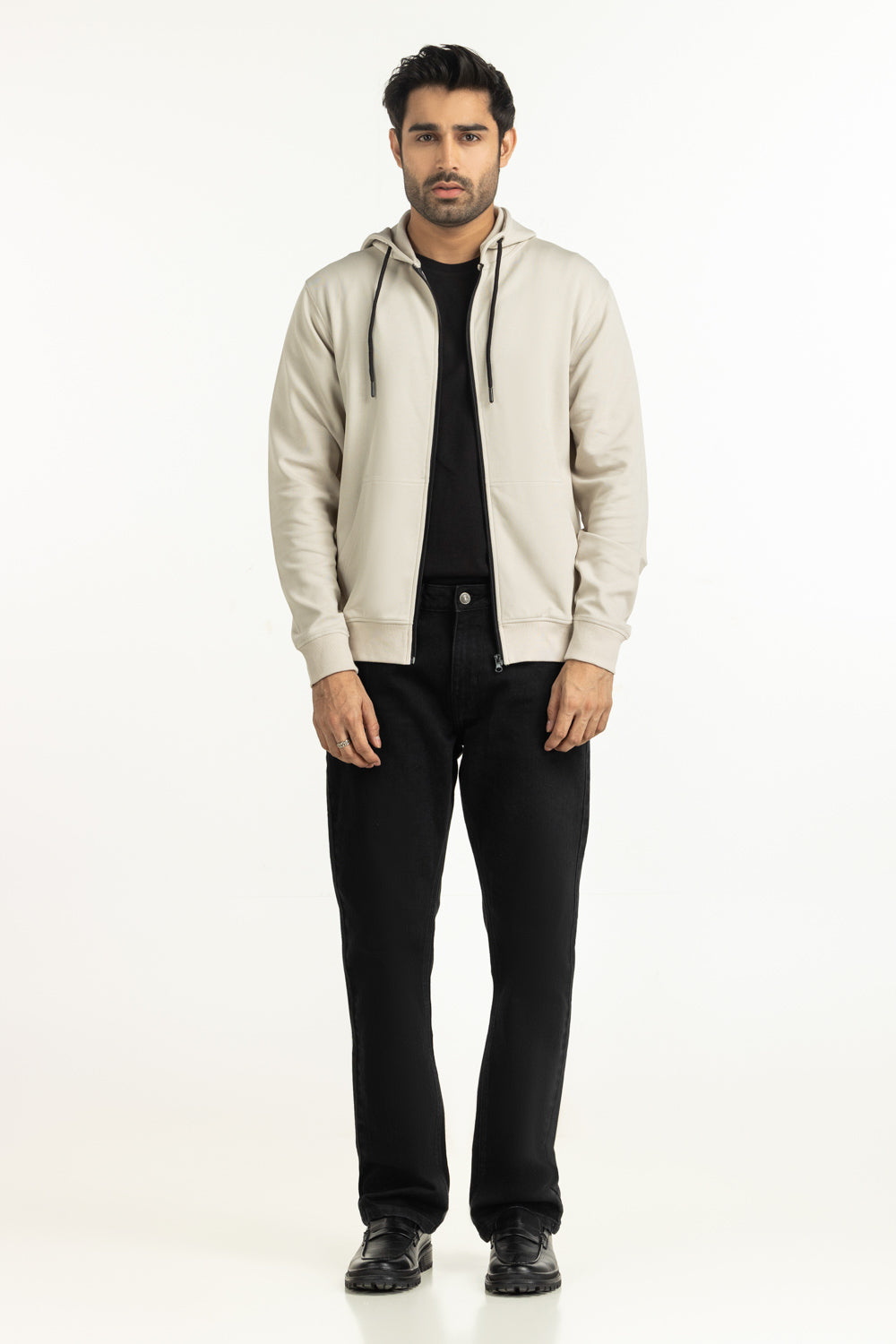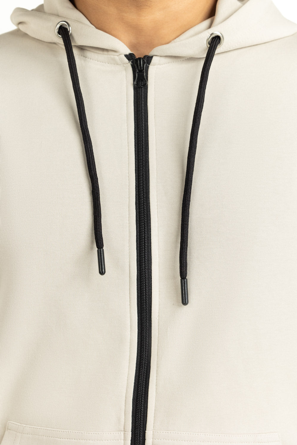 Minimal in design, maximal in comfort. This stone-grey sweatshirt with a zipper front and hood provides a cozy yet polished look that fits seamlessly into modern routines.