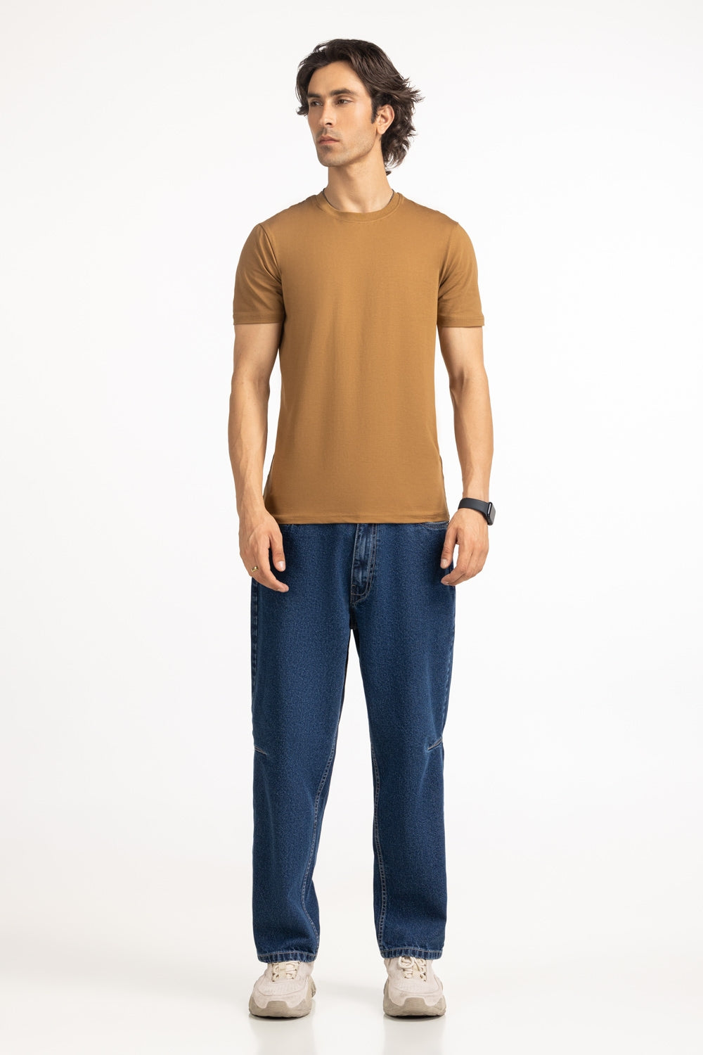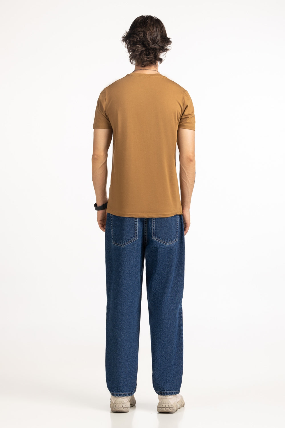A go-to for every casual style, this t-shirt wraps a warm pecan tone with a muscle fit that outshines without clinging. The breathable fabric offers smooth texture with a lasting hold. While the crew neck adds a neat edge to its minimal cut
