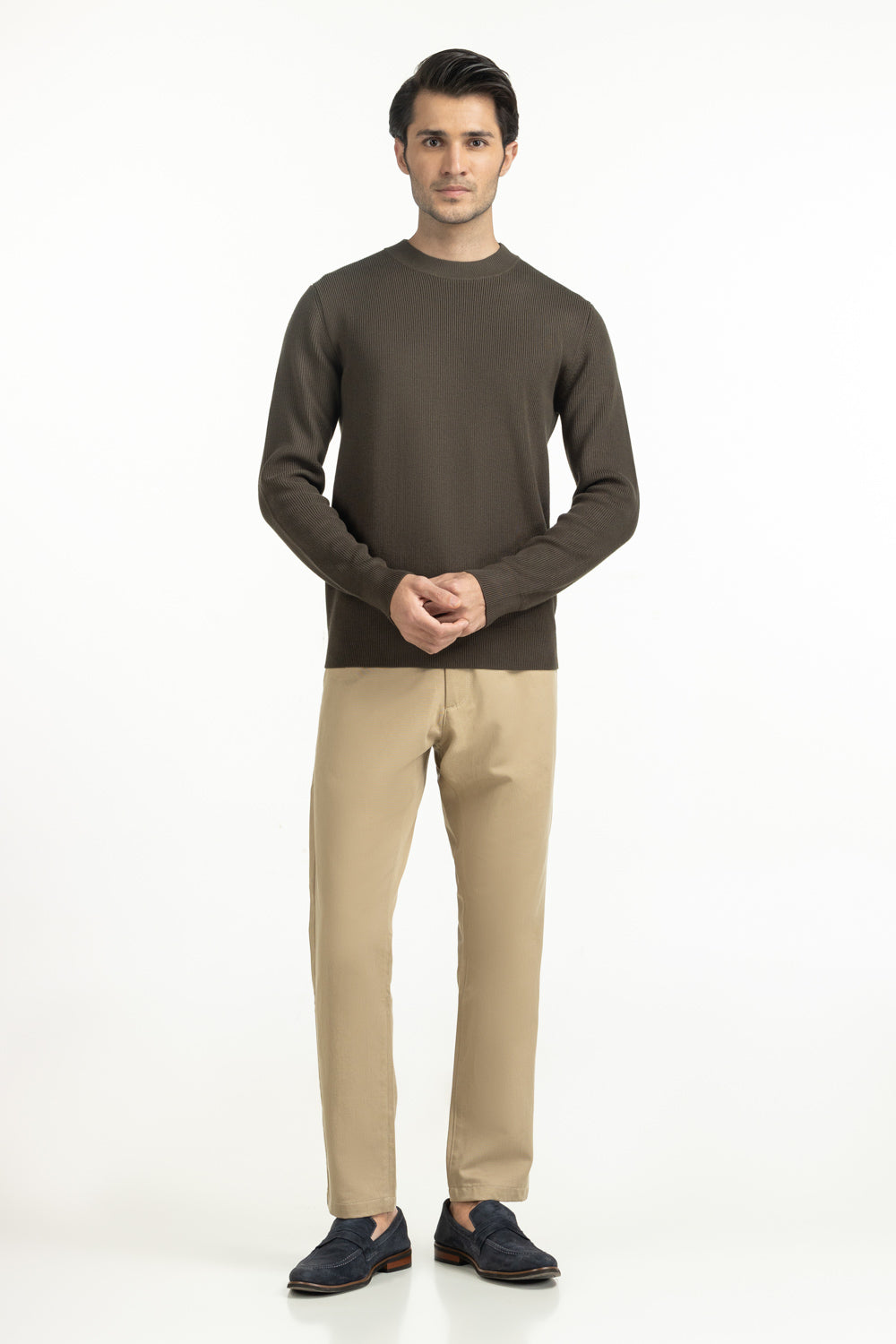 Knitted in a contemporary olive tone, this crew neck sweater adds a fresh twist to winter dressing. The regular fit creates a clean silhouette, while the smooth knit finish reflects the craftsmanship perfect for any occasion.