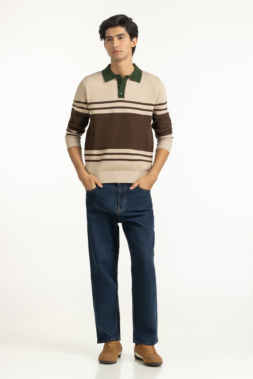 A modern classic in earthy tones, this knitted polo balances tradition with modern aesthetics. The regular fit offers relaxed structure, while the contemporary design exudes a youthful edge into timeless winter wear.