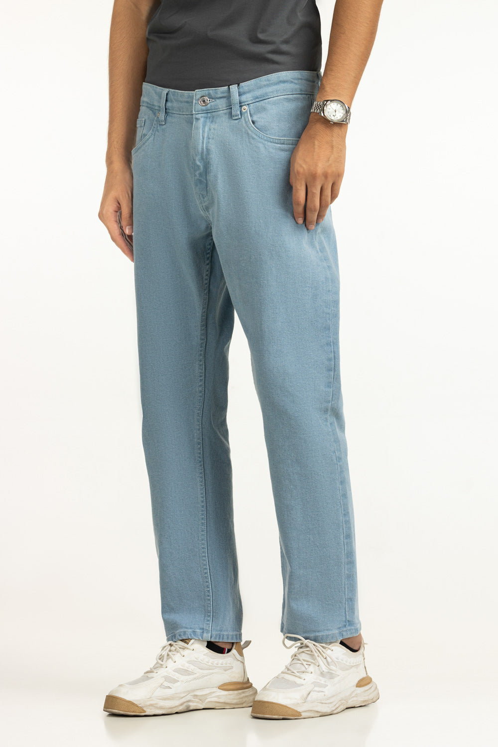 Tailored in a trendy slim fit, these ice blue shaded jeans provide a silhouette that remains easy to wear throughout winter. The cotton weave offers structure while allowing natural movement effortlessly.