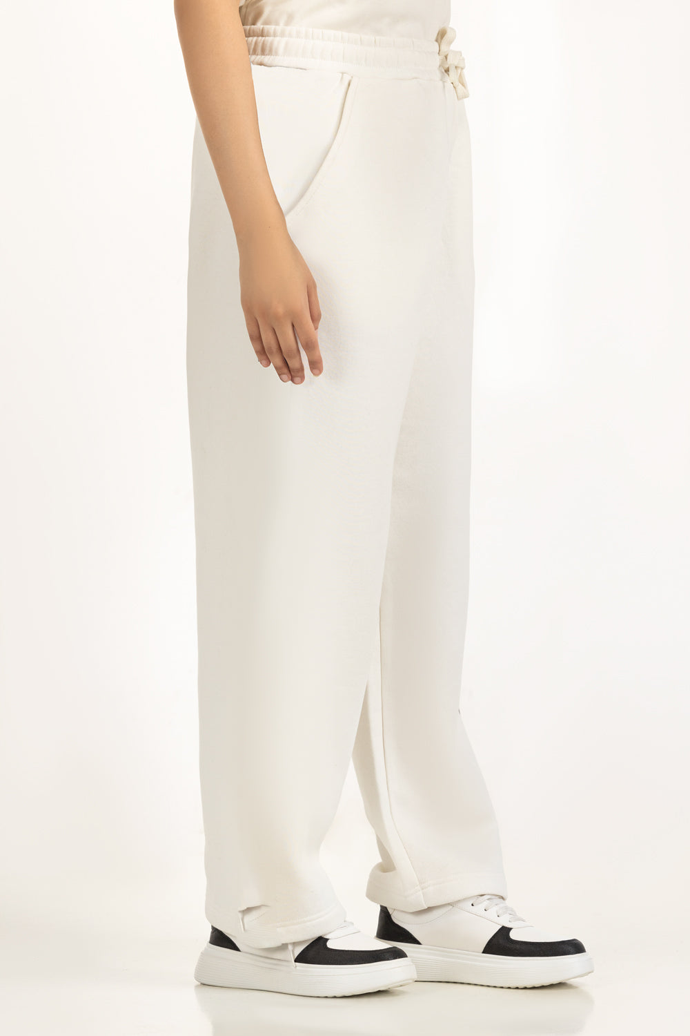 These jog-fit trousers in white features a plush knit texture for easy wear. The minimal design creates a versatile base that transitions seamlessly from lounge to street wear.