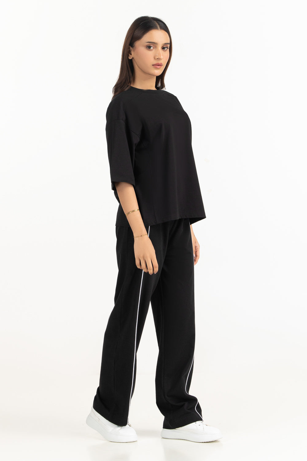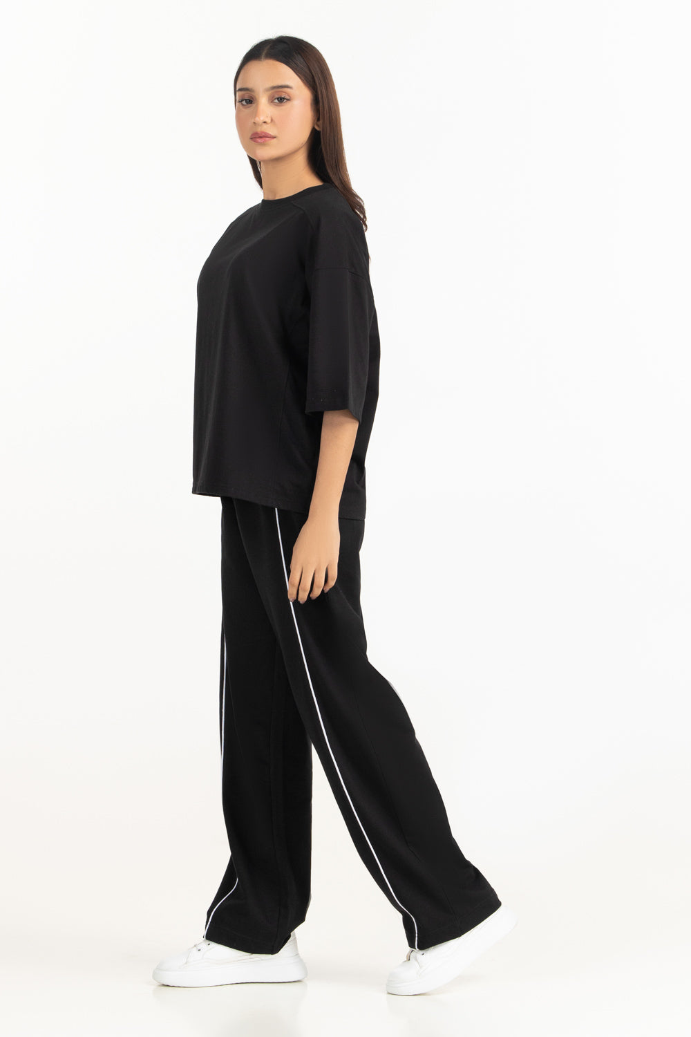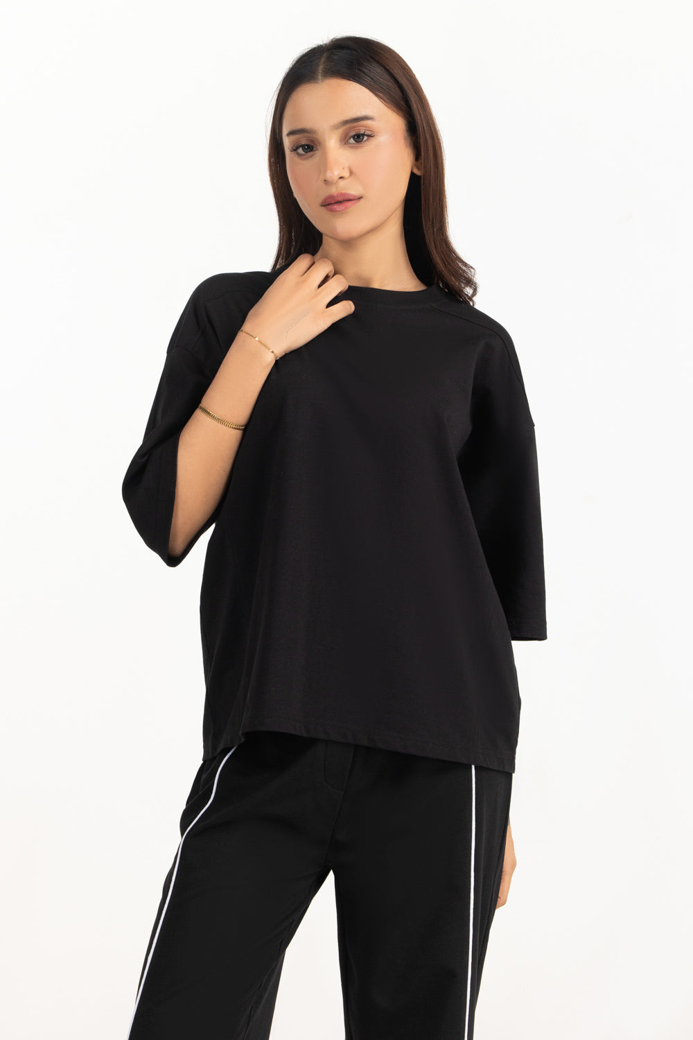 Designed using cotton-polyester blended fabric, this relaxed fit top provides durability with comfortable drape. The classic black color highlighted within the styling tone enhances its versatile everyday appeal.