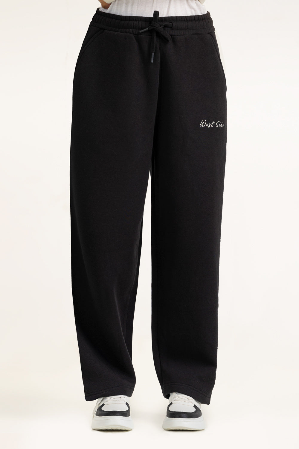 These black trousers combine the ease of loungewear with the sophistication of a tailored jog-fit. The knitted texture adds a subtle depth, creating a look that feels both cozy and polished. Perfect for the woman who values comfort without compromising on style.