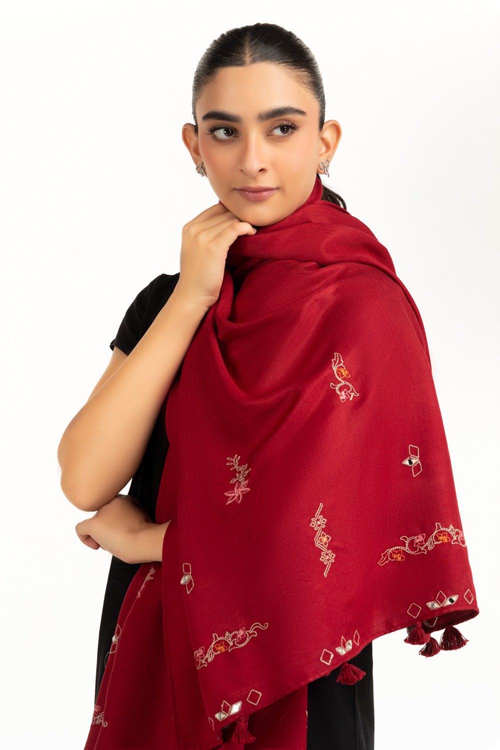 In a rich maroon shade, this stole with fine embroidery adds warmth and personality to your winter looks. The fabric’s soft structure wraps beautifully, while the tassels lend a trendy, feminine detail. Making it a cozy must-have for your ethnic collection.