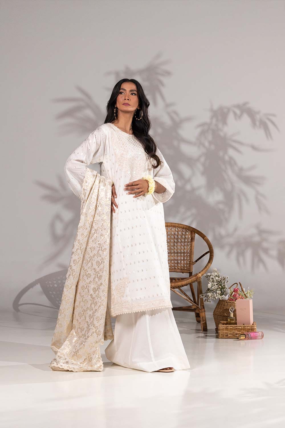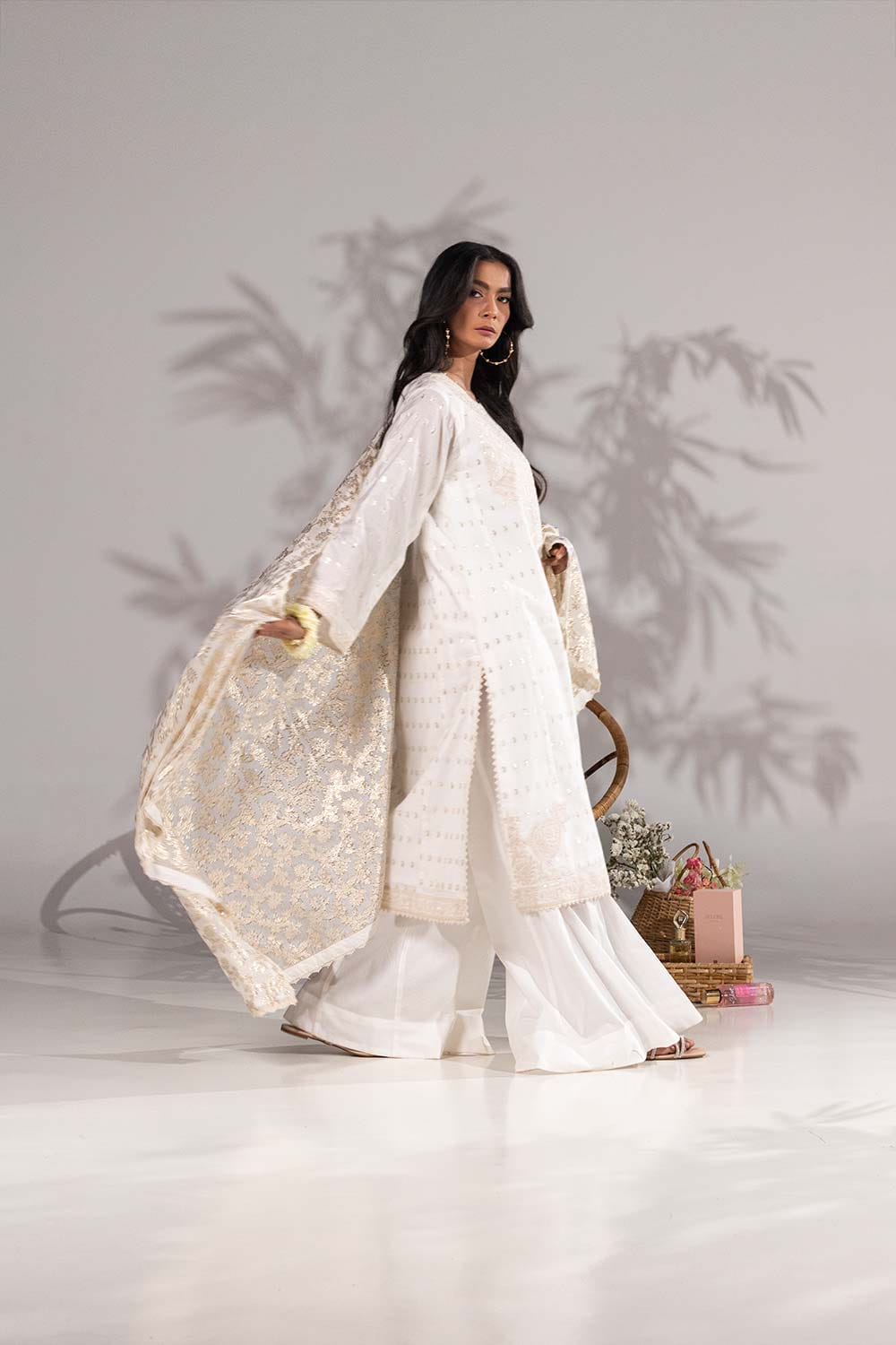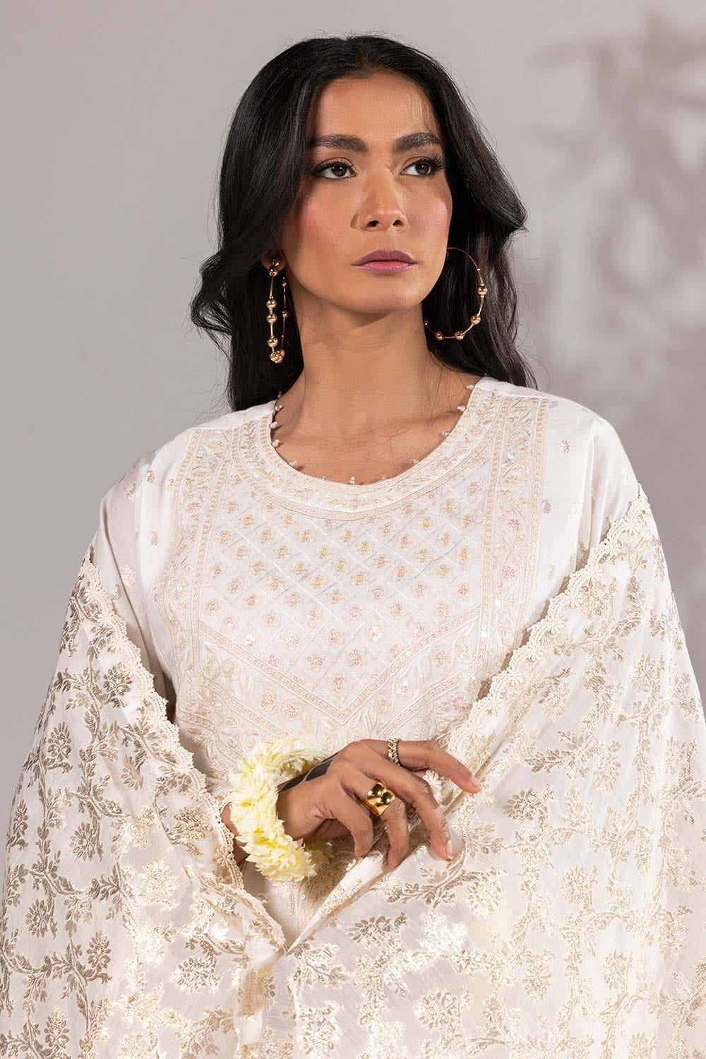 Ready to wear 3Pcs lurex jacquard embroidered shirt with inner and dhaka pajama with dupatta