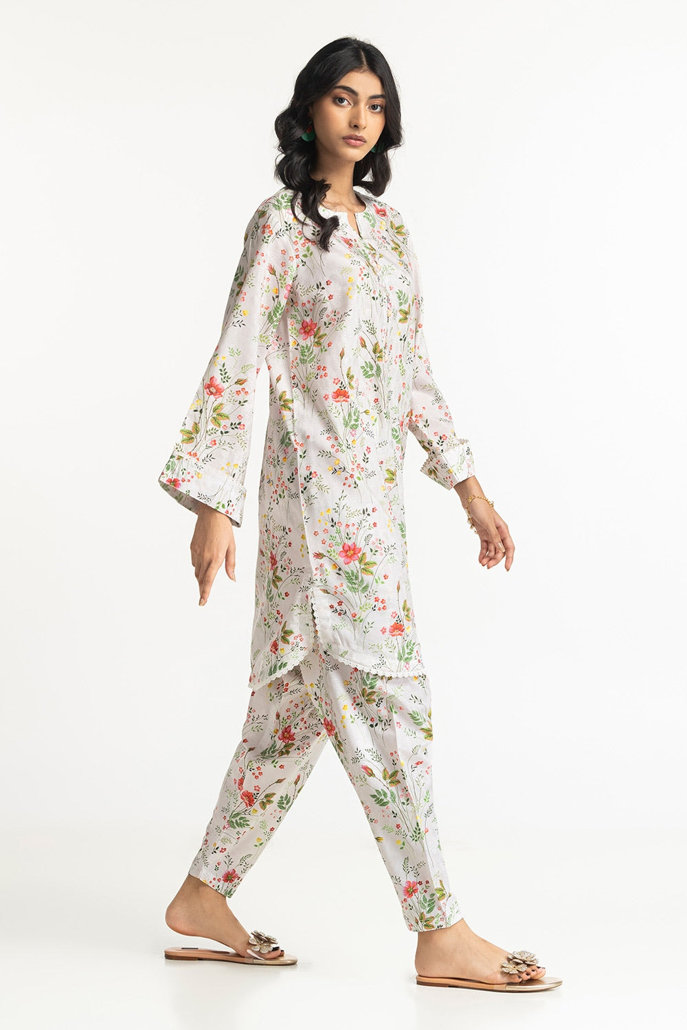 Ready to wear Create your style with this lovely 2PC floral print kurta set with a round neckline and straight trousers. Made from soft, breathable fabric, this set is ideal for casual wear, offering a comfortable fit and a charming look.