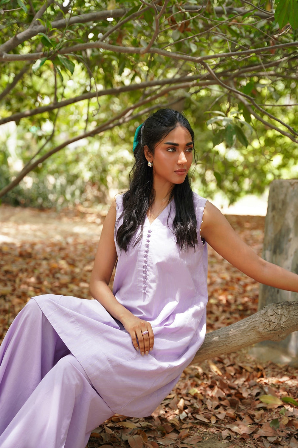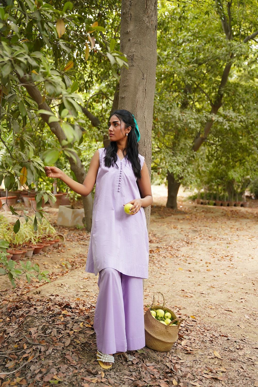 Ready to wear Step into a dreamy garden with this 2PC sleeveless kurta set. The relaxed fit and wide-leg pajama make it perfect for warm days. Crafted from lightweight fabric for ultimate comfort and style.