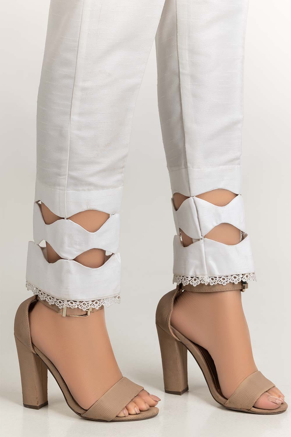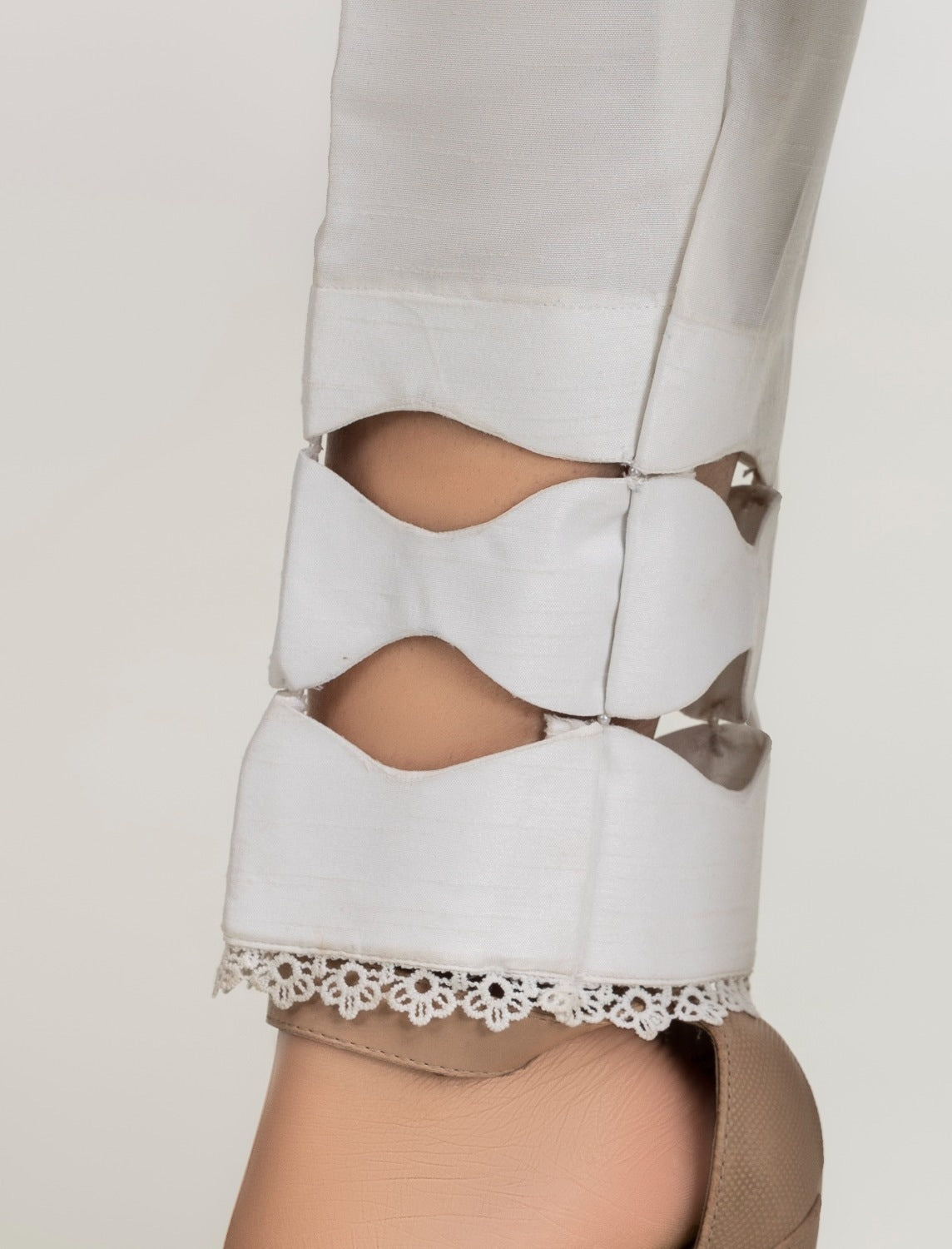 Off white dyed indian raw silk embellished trouser with cut work & off white dyed lace finishing.