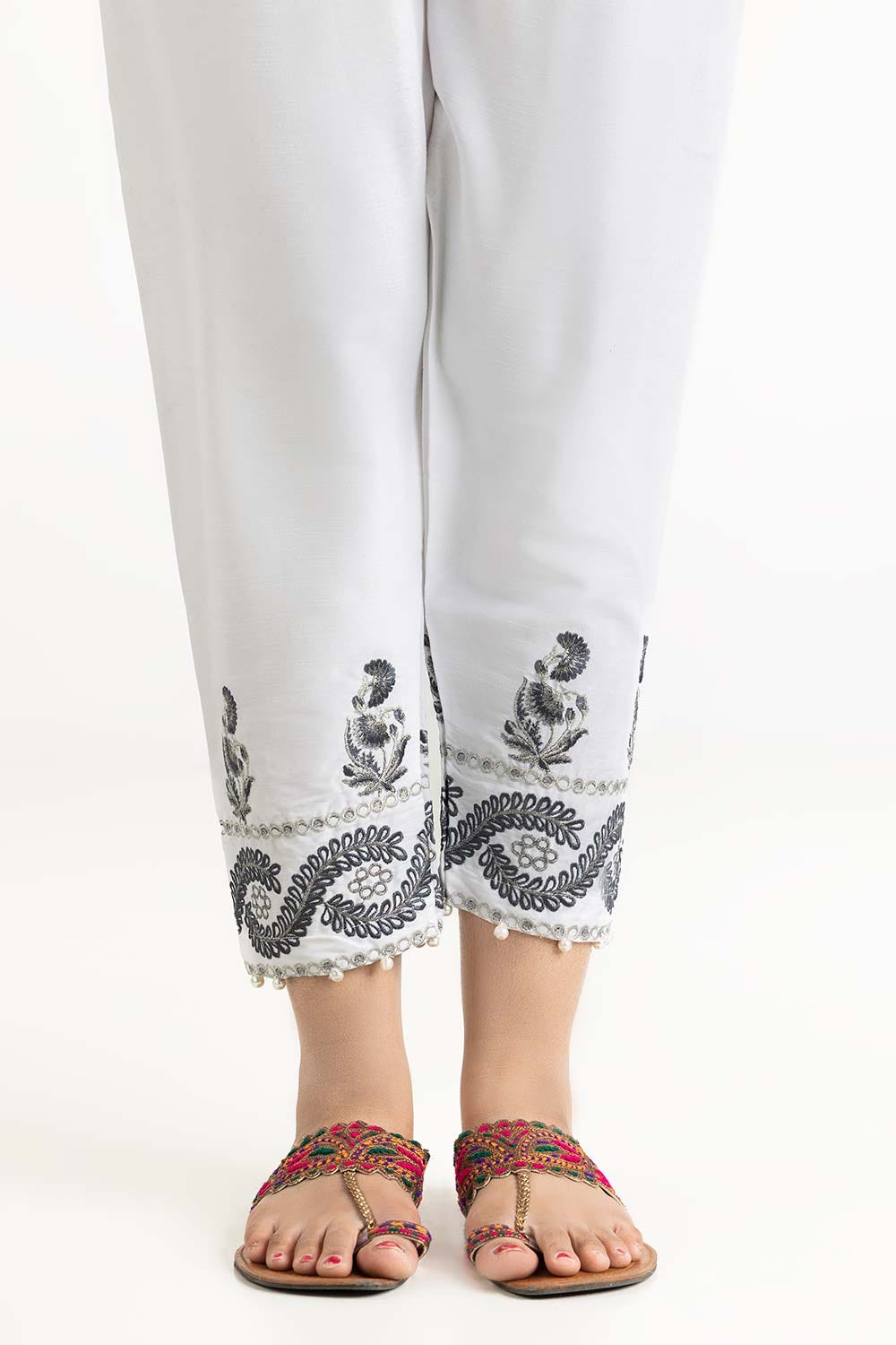 Off White Raw Silk Embroidered Trousers TR-22-131