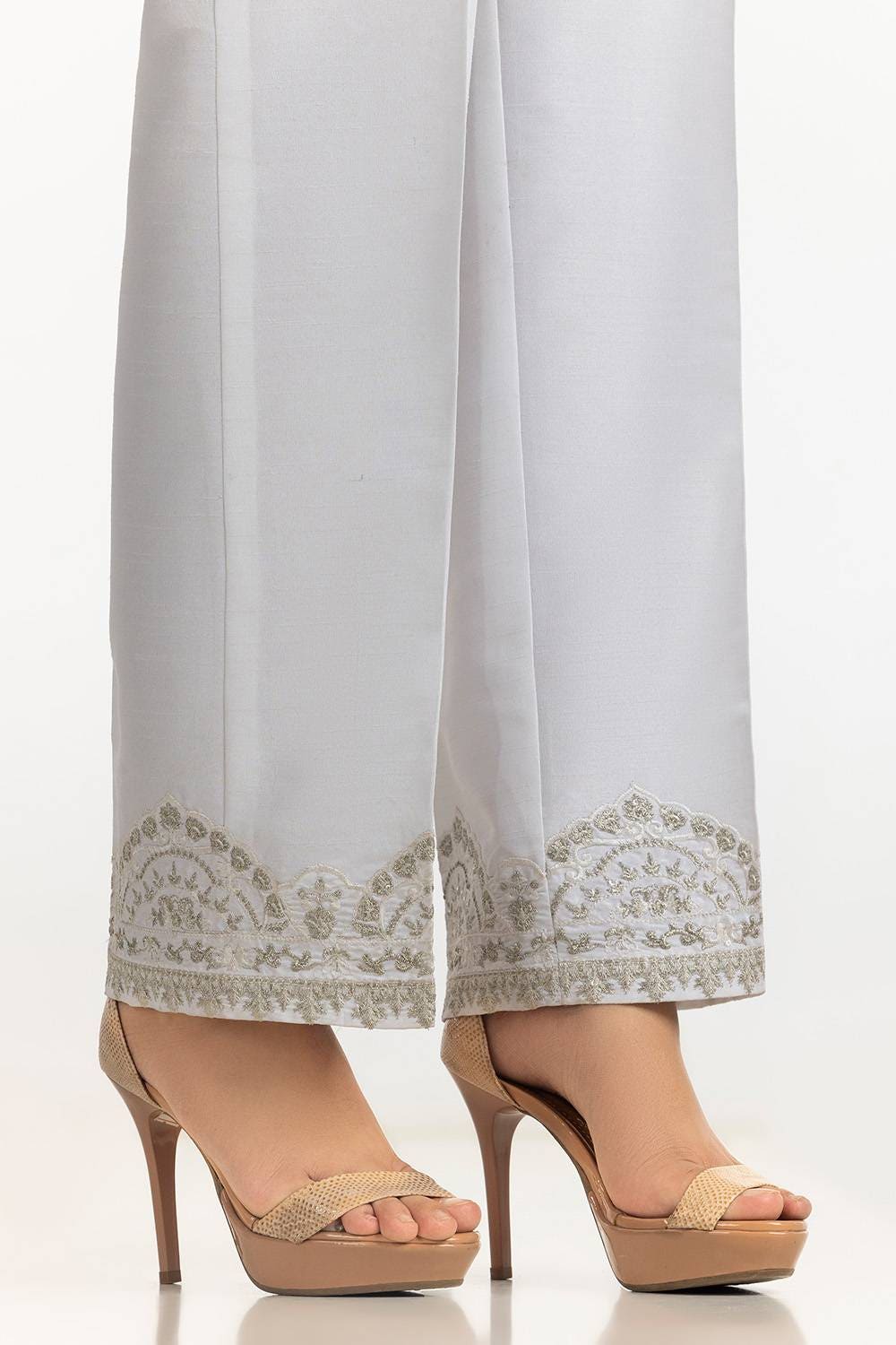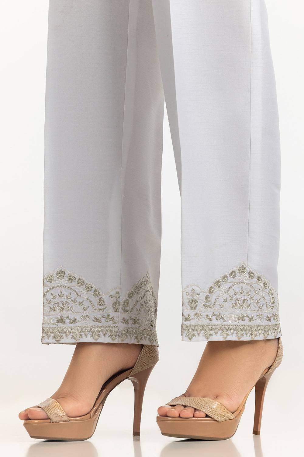 Ready to wear These classic black raw silk trousers feature elegant embroidery, offering a perfect blend of sophistication and comfort. Pair them with any top to create a chic, polished look for any occasion.