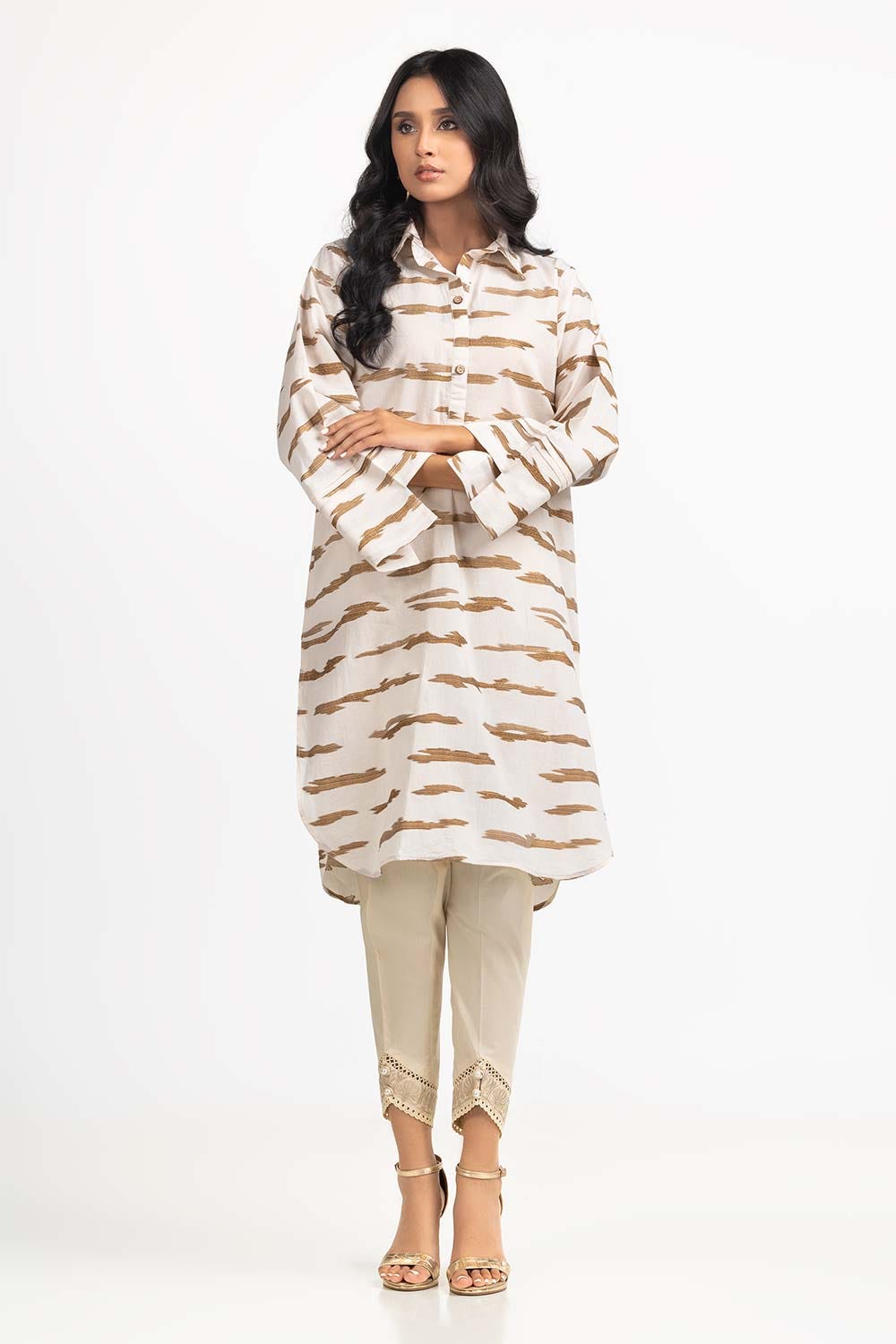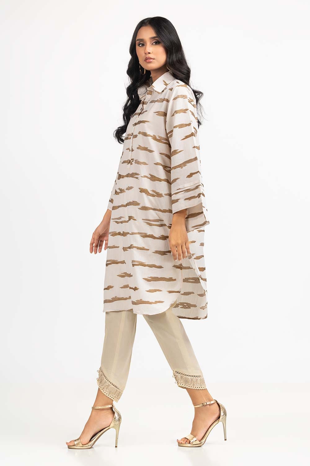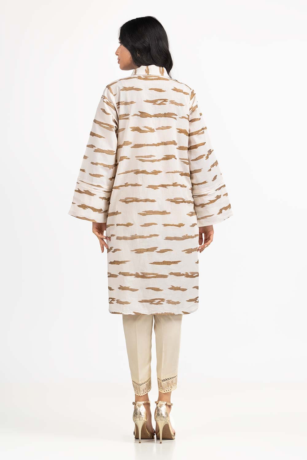 Ready to wear Off-white jacquard shirt featuring a shirt collar with buttons, straight sleeves with detailing and a rounded hem.