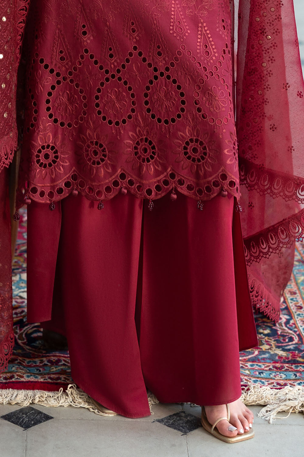 • Dyed Trouser with Embroidered Border on Organza - 1.75 Meters