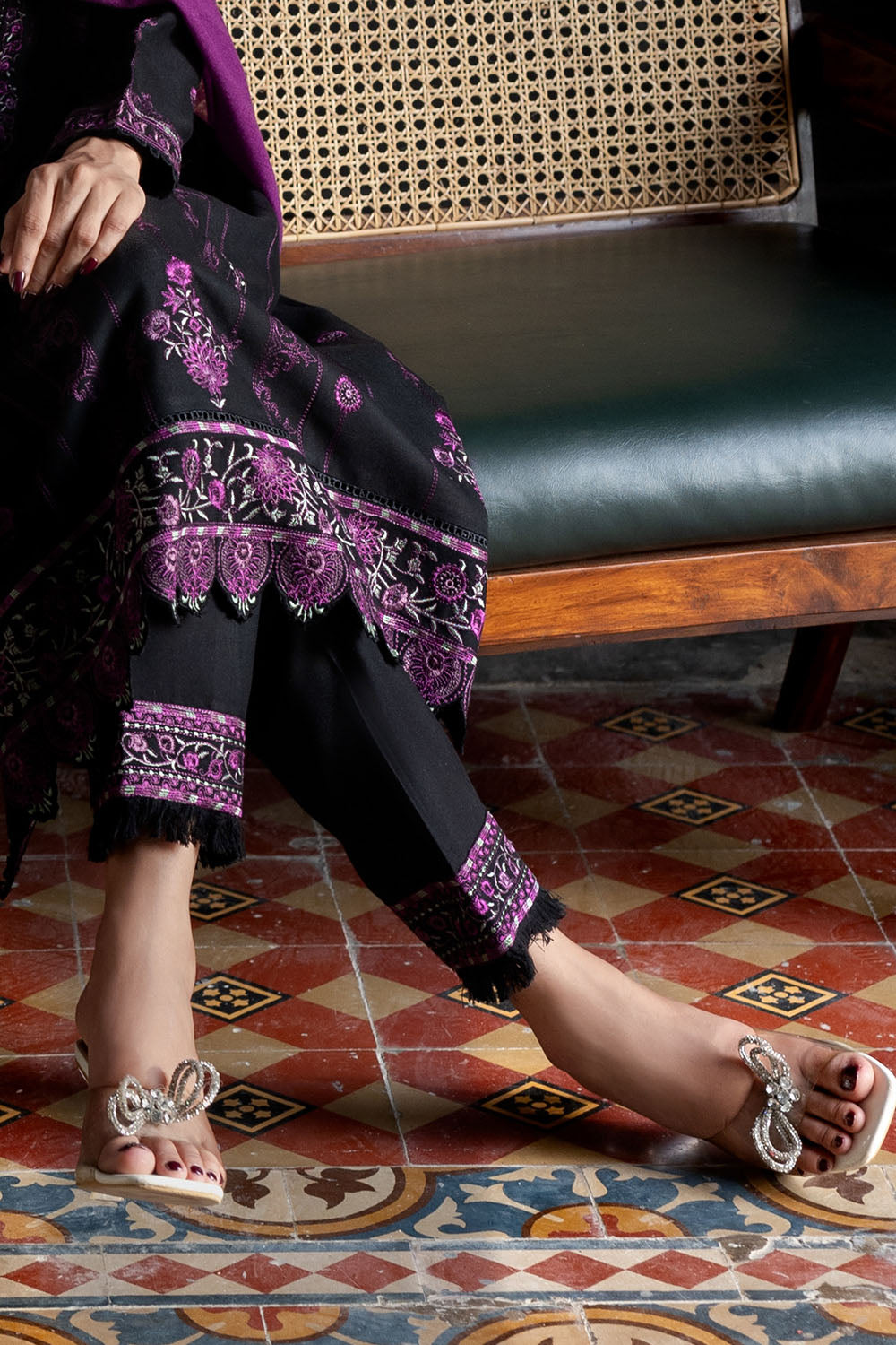 • Dyed Pashmina Trouser with Embroidered Border - 2.5 Meters