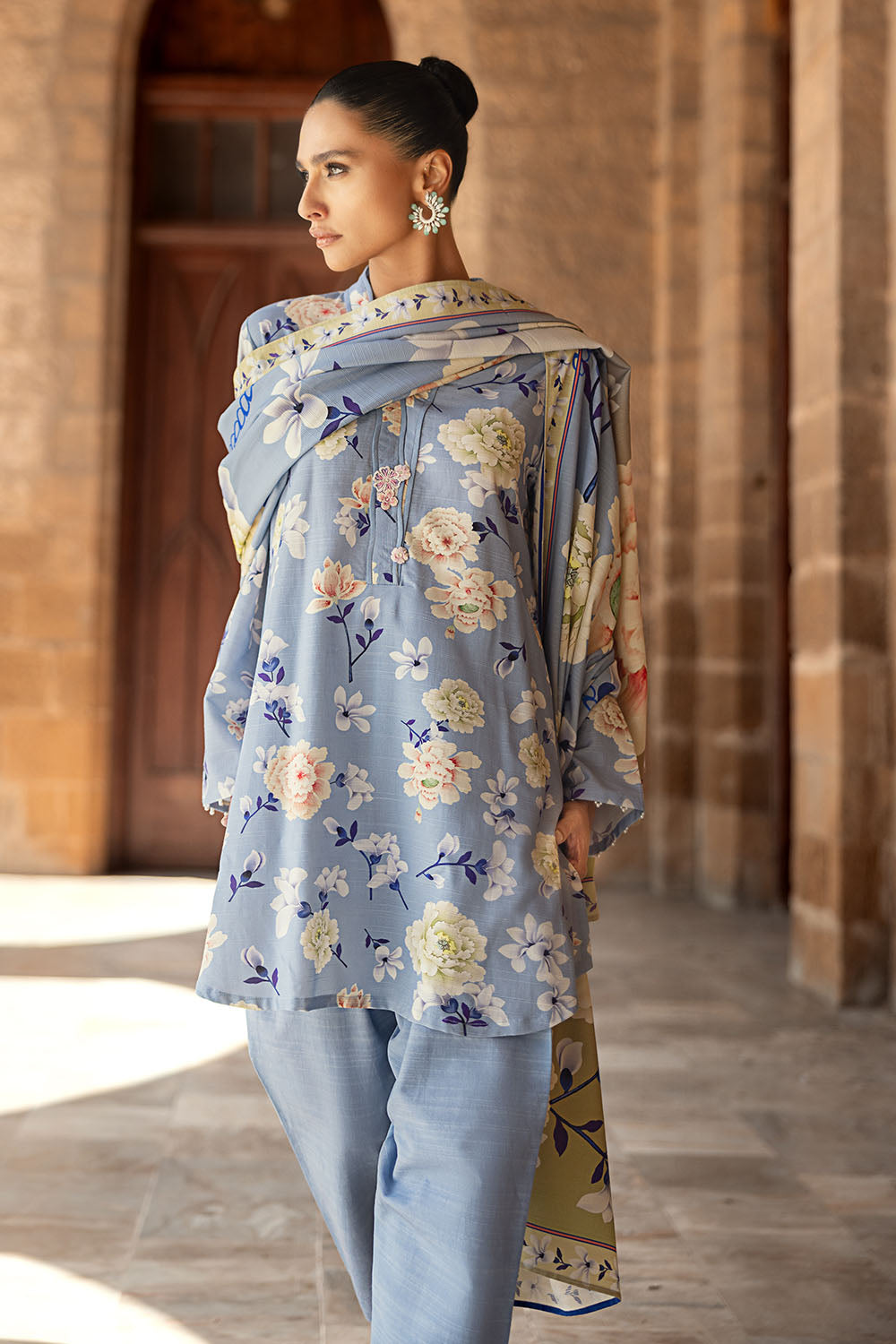 3 Piece Printed Corduroy Suit with Dupatta CD-52005