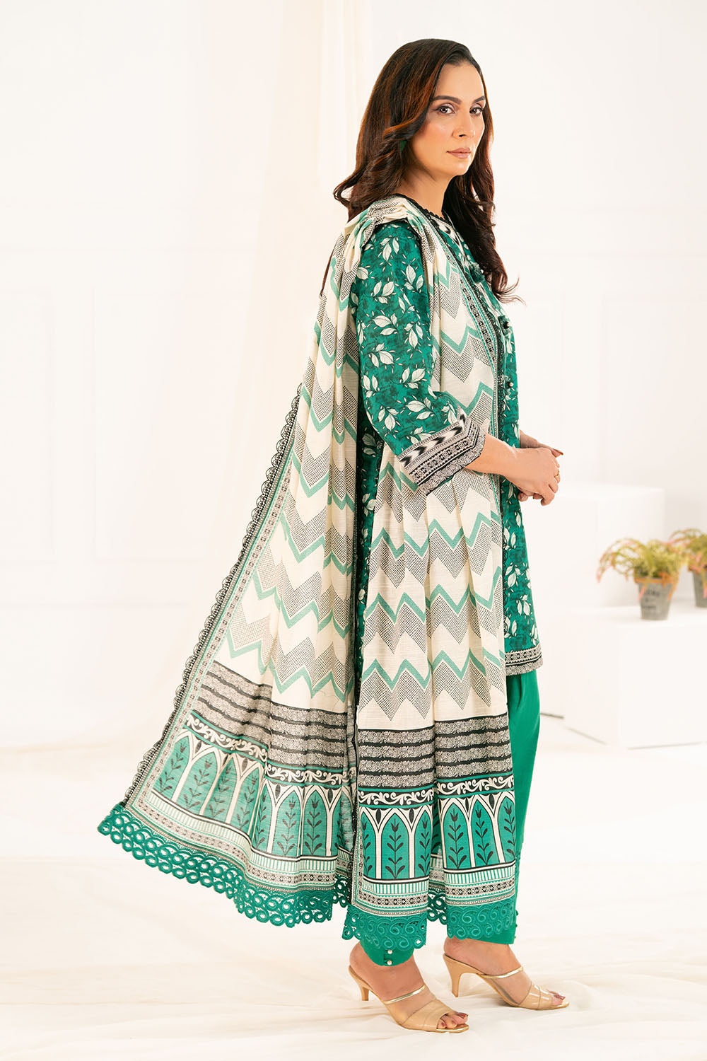3 Piece Printed Khaddar Suit with Dupatta K-52065