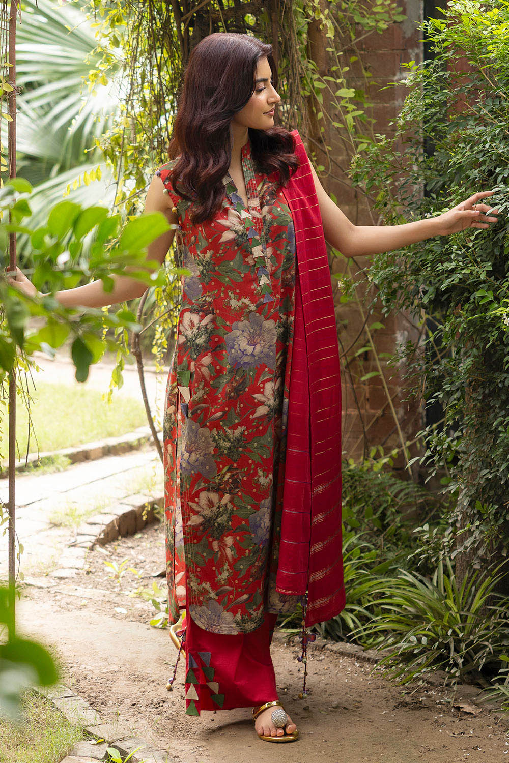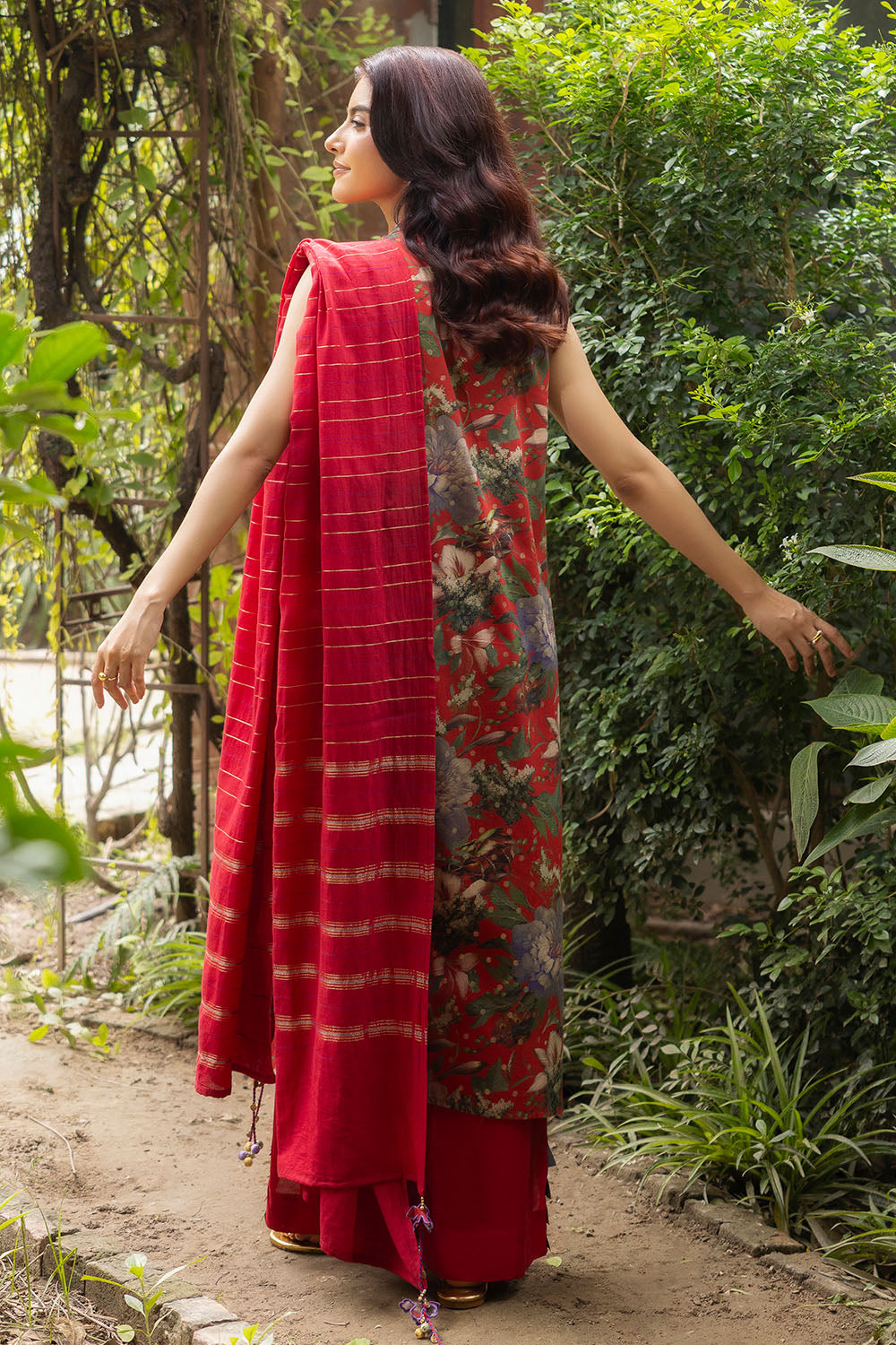 3 Piece Printed Lurex Jacquard Suit with Stripe Dupatta SP-52086