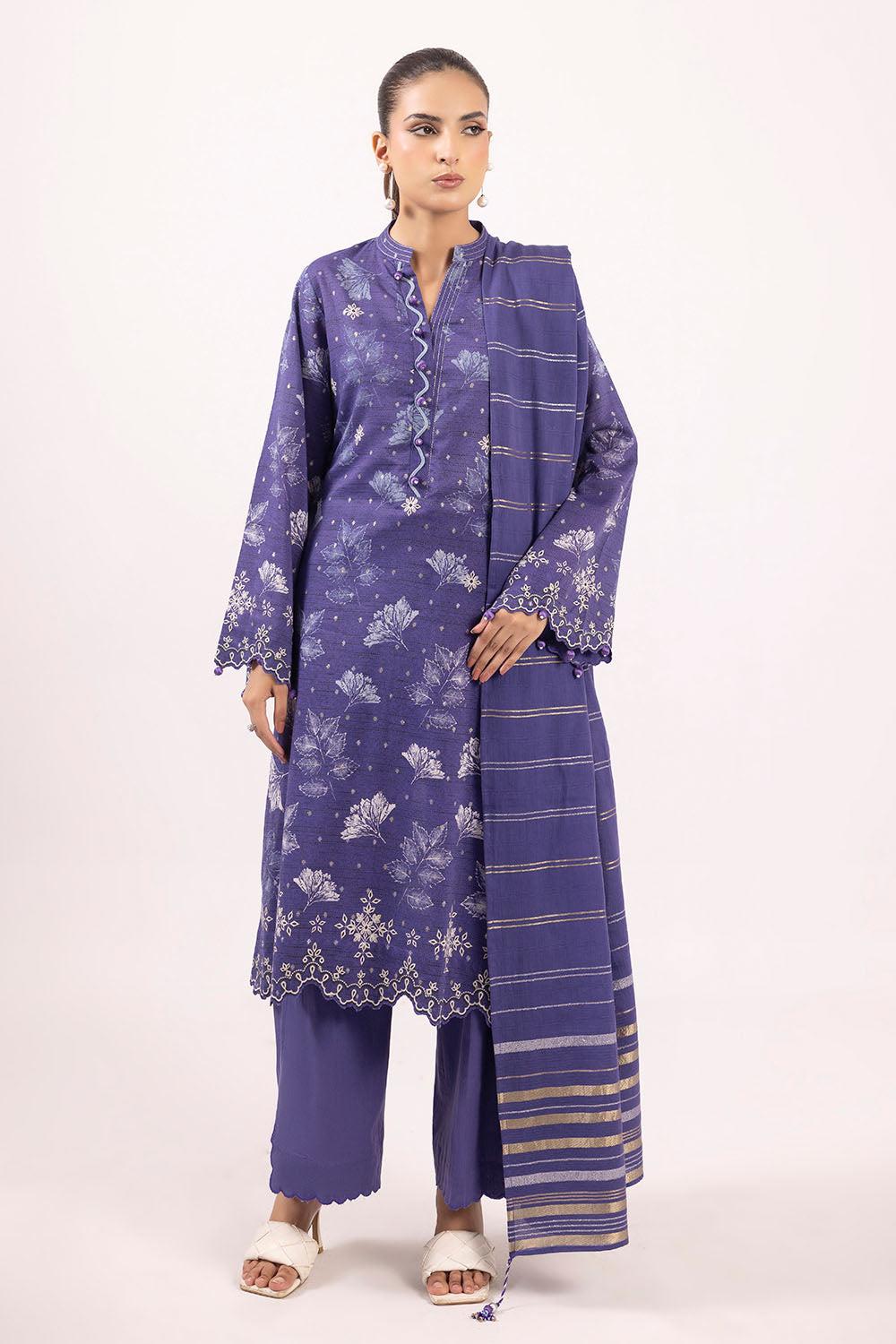 3 Piece Printed Lurex Jacquard Suit with Stripe Dupatta SP-52087