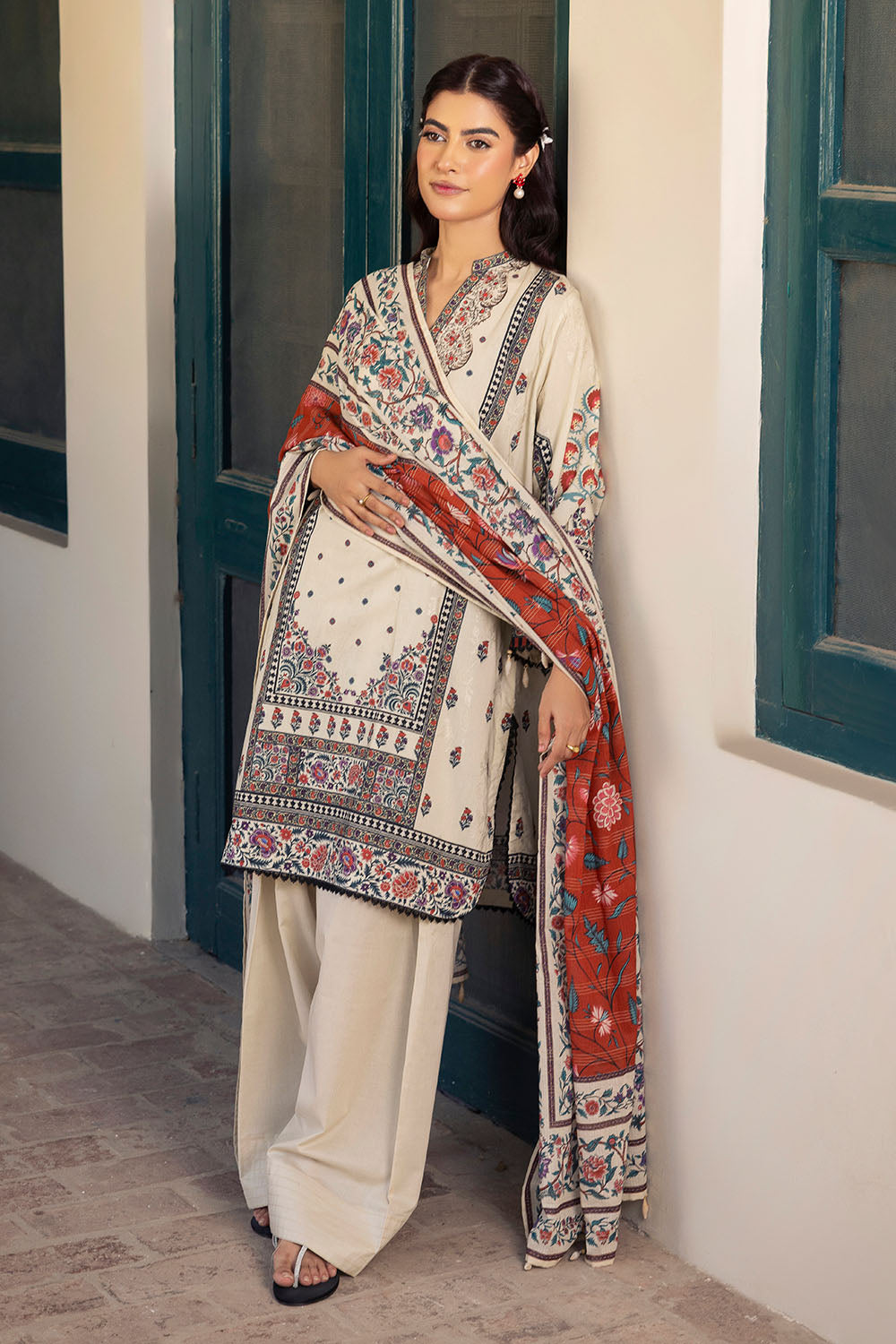 3 Piece Printed Zari Stripe Self Jacquard Suit with Dupatta SP-52085