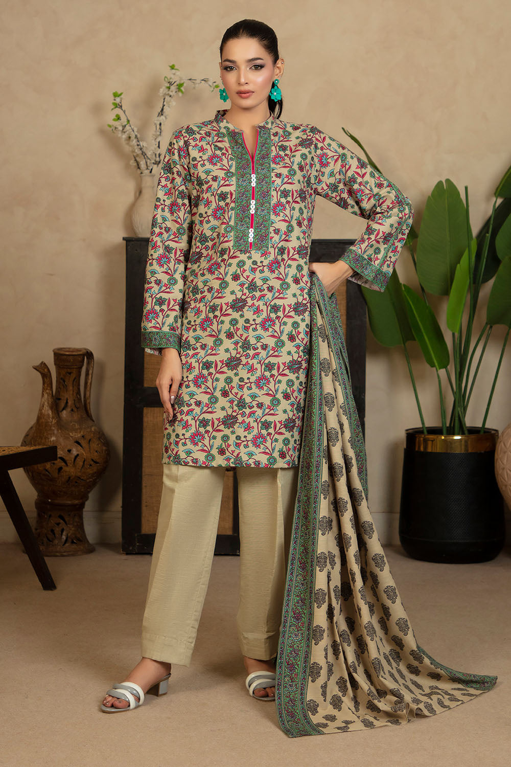 3 Piece Printed Khaddar Suit with Dupatta WNS-52061