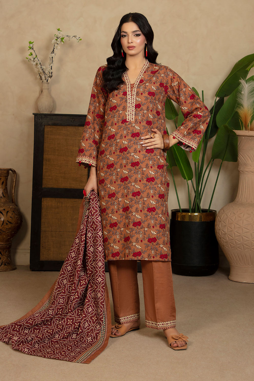3 Piece Printed Khaddar Suit with Dupatta WNS-52063