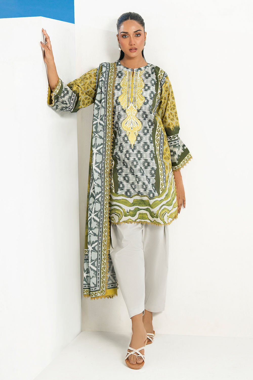 3 Piece Printed Lawn Suit with Embroidered Organza Neckline CL-62198