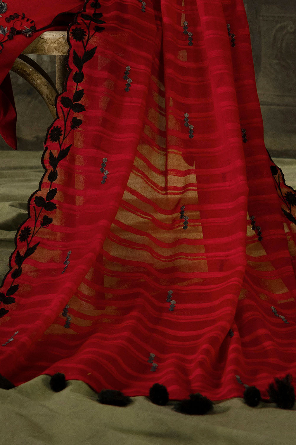 • Embroidered Stripe Khaddar Dupatta - 2.50 Meters