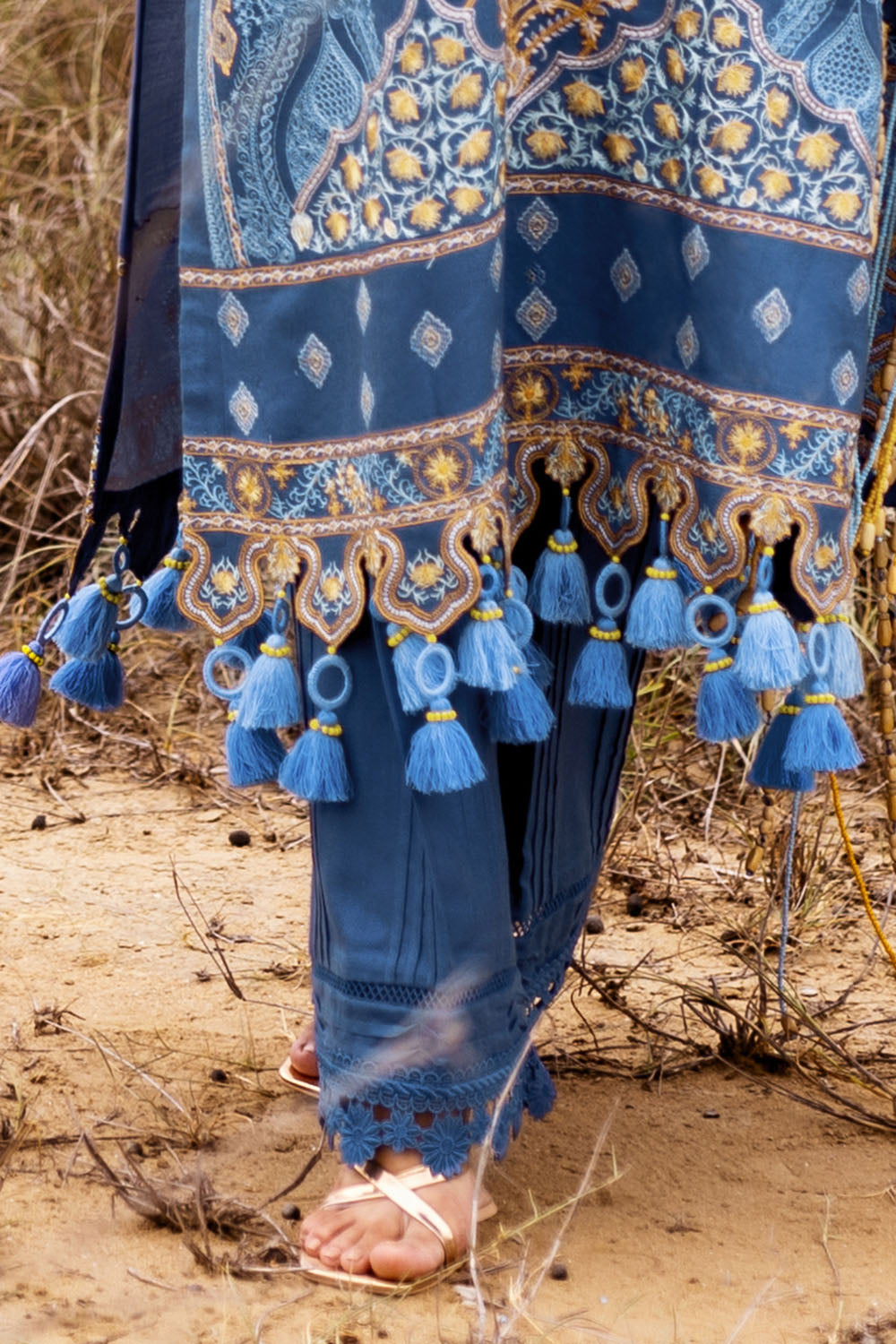 • Embroidered Pashmina Shawl with Pallu - 2.50 Meters Embroidered Pashmina Shirt Front Panel, Side Panels and Sleeves with