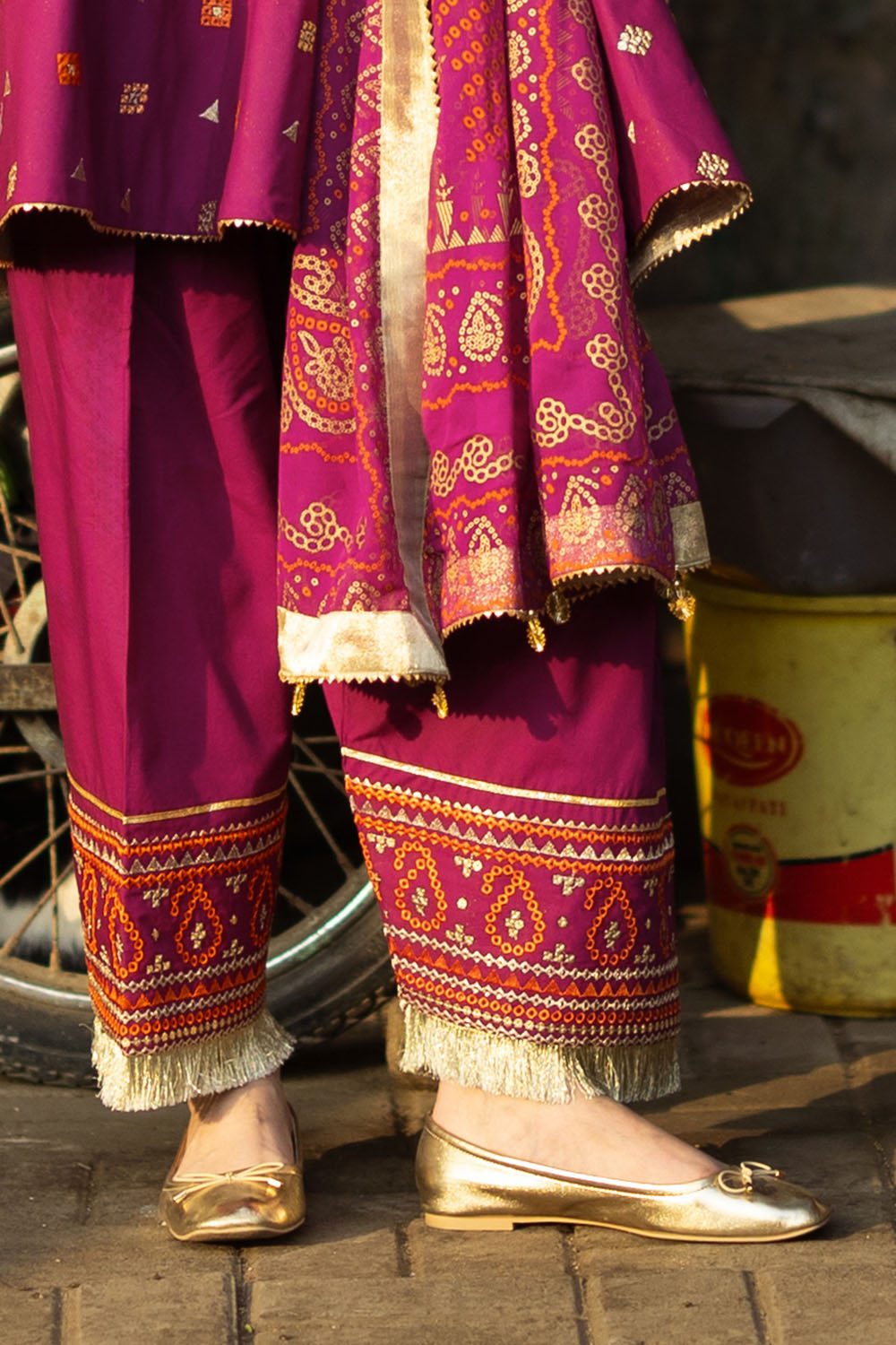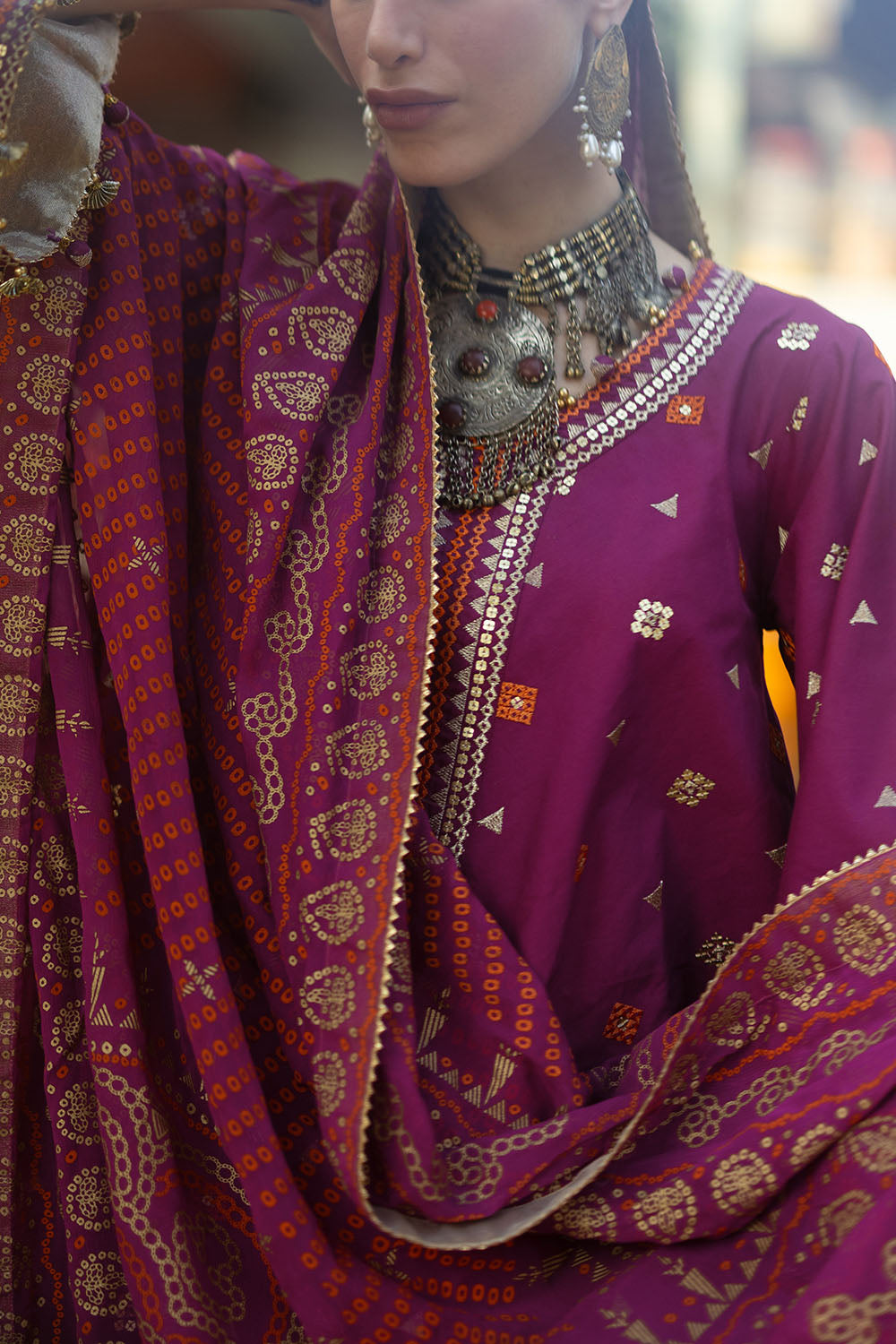 3 Piece Embroidered Lawn Suit with Gold and Lacquer Printed Chiffon Dupatta and Dyed Trouser BM-62027