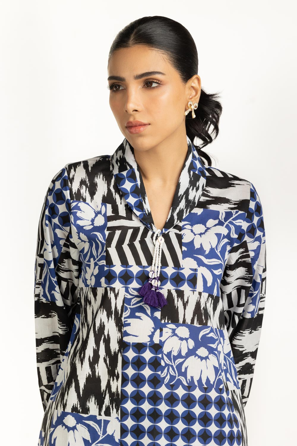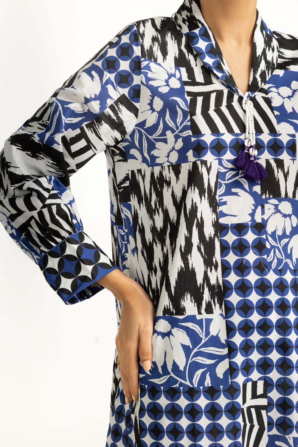 Details: Printed Co-ord set featuring Sailore-Collar with delicate Tassels and Rounded Hem.