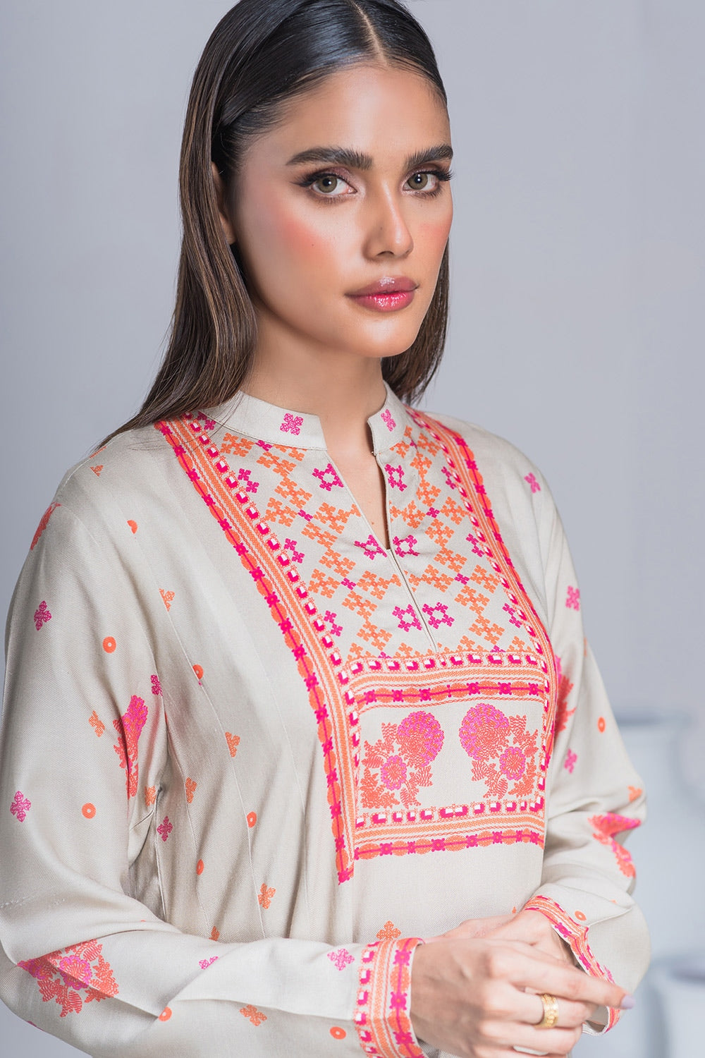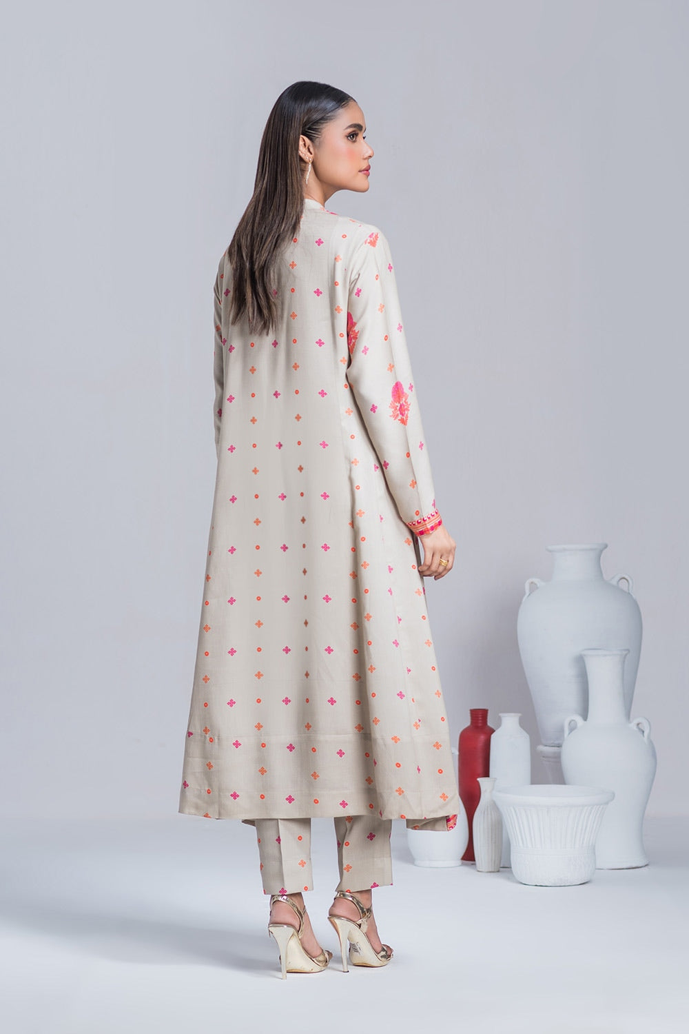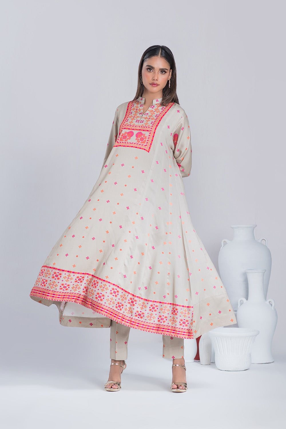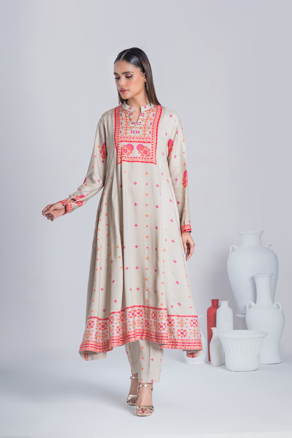 Turn heads with our Twill Viscose Printed Frock and Trouser set in elegant Beige. Featuring intricate digital prints and sleek straight pants, this suit blends timeless charm with modern style. Perfect for any occasion!