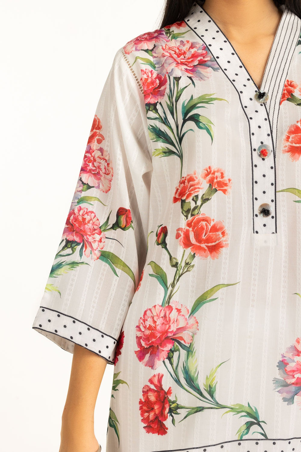 This stunning shirt, crafted in a textured fabric with a loose fit, comes alive with its vibrant floral print that exude the summer charm. The breezy silhouette and contemporary aesthetics drapes gracefully, keeping you comfortable and confident all day long.