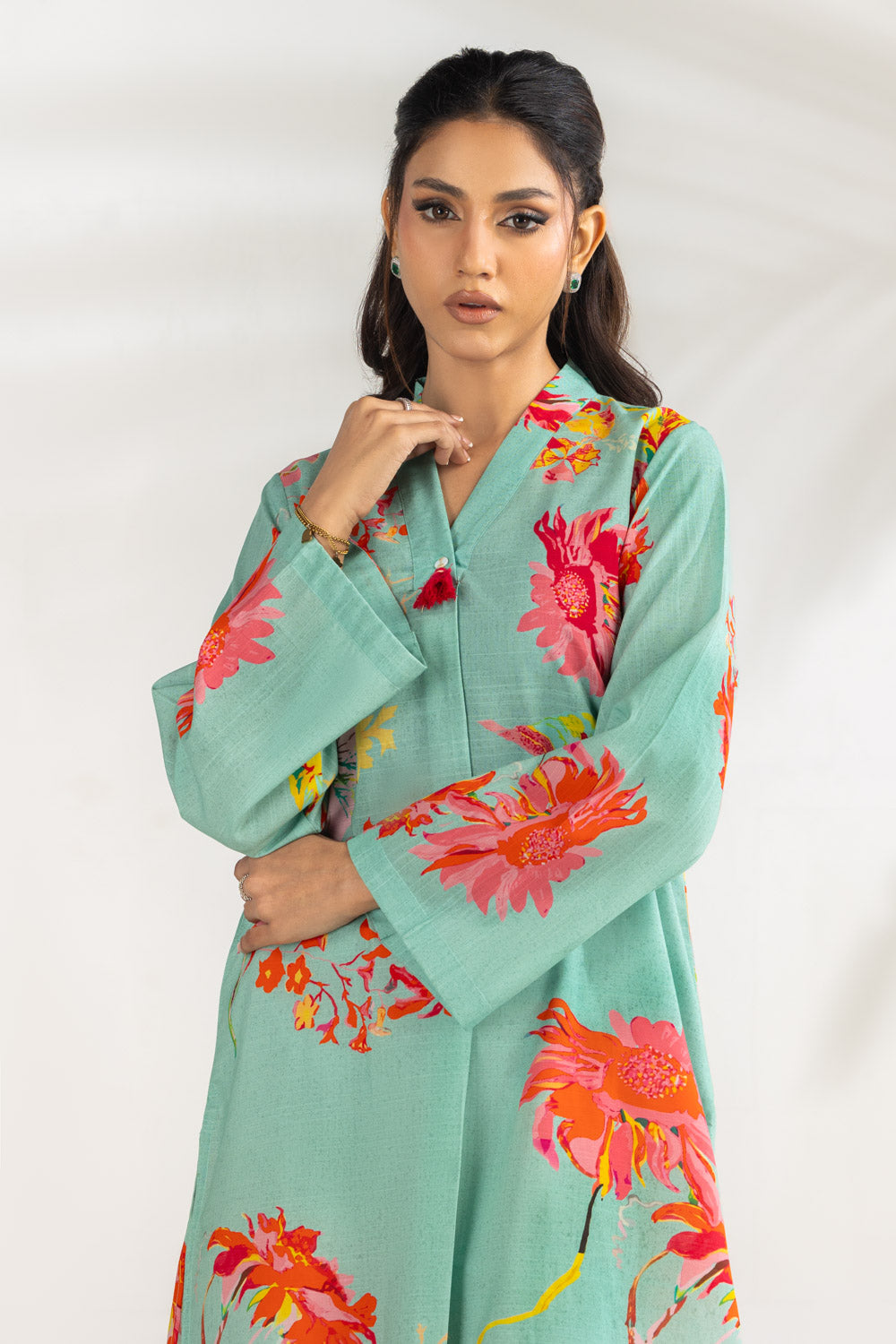 Fresh green hues meet classic florals in this cambric shirt designed for summer comfort. The regular fit offers a neat silhouette without restricting movement, making it suitable for both workdays and casual plans. Lightweight fabric keeps you feeling at ease while maintaining a polished ethnic look.
